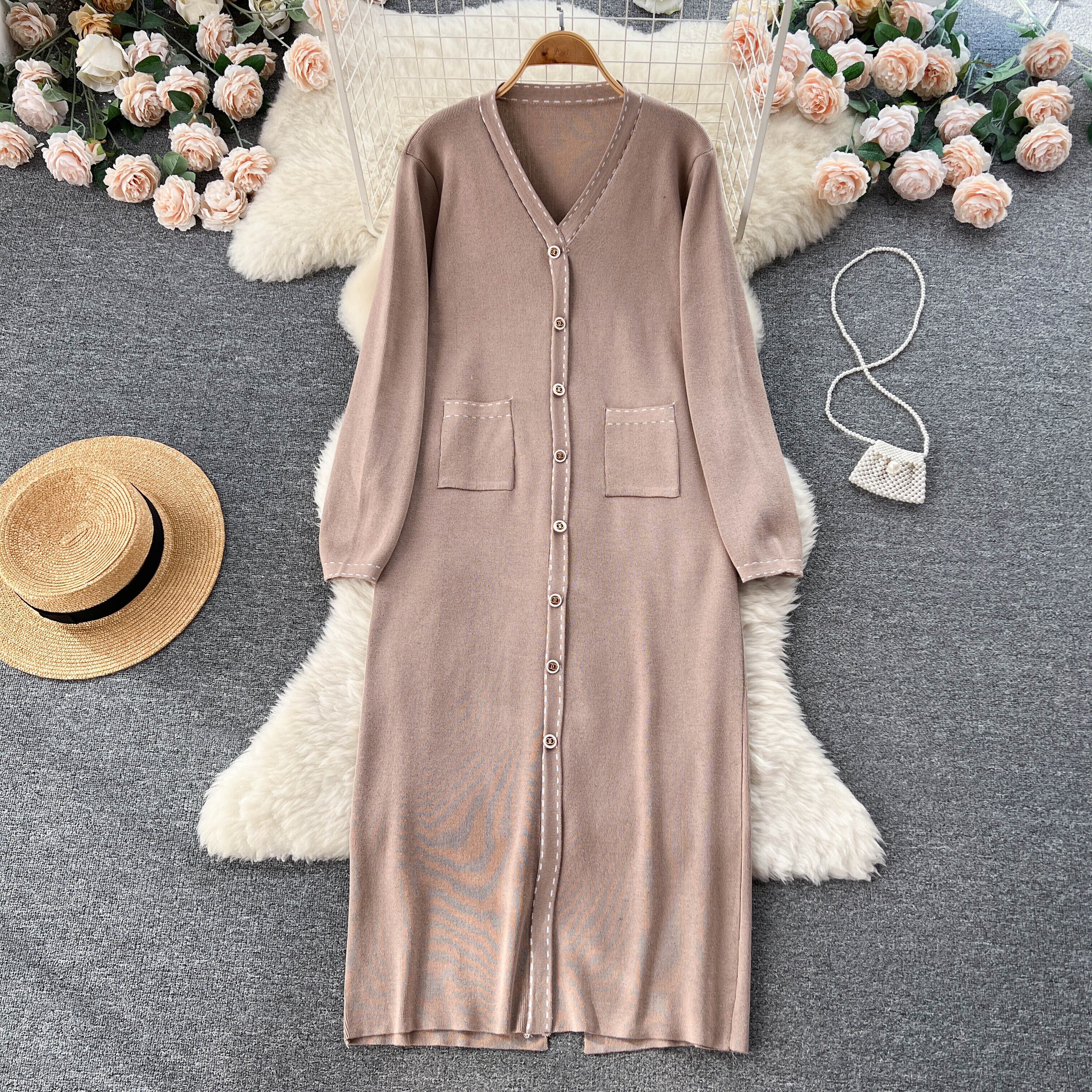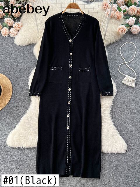 セーター長袖ドレス女性パーティープルオーバー 2022 秋冬ボタンスカート ロング オータム 秋物 ウィンター 冬物 Abe58208829729