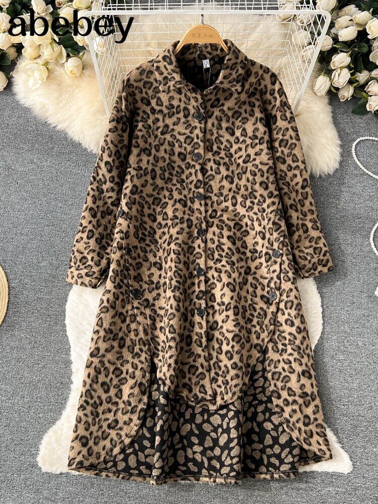 ルーズ長袖プリント ドレス女性の春ストリート ターンダウン カラー シャツ ドレス ロング スプリング 春物 Abe68284957888