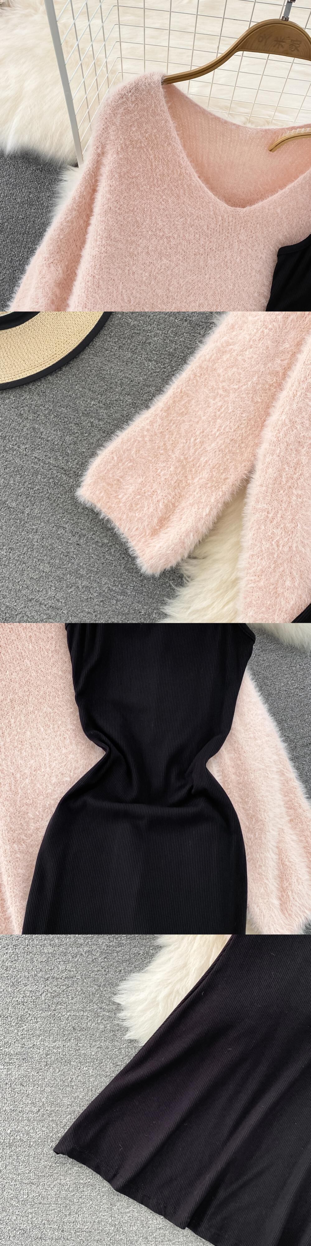 2022 衣装ニット女性セットルーズ長袖セーター + 固体弾性ドレスフレンチスタイルのツーピースセット ロング エラスティック 伸縮 ソリッドカラー Abe8053104742
