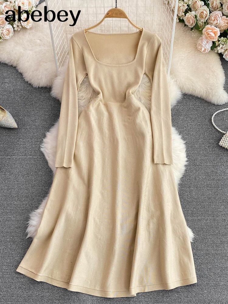 長袖ニットドレス女性冬秋 2022 A ラインミディドレスセクシーな固体セータードレス黒 ロング ブラック オータム 秋物 ウィンター 冬物 Aライン ソリッドカラー Abe97378730611