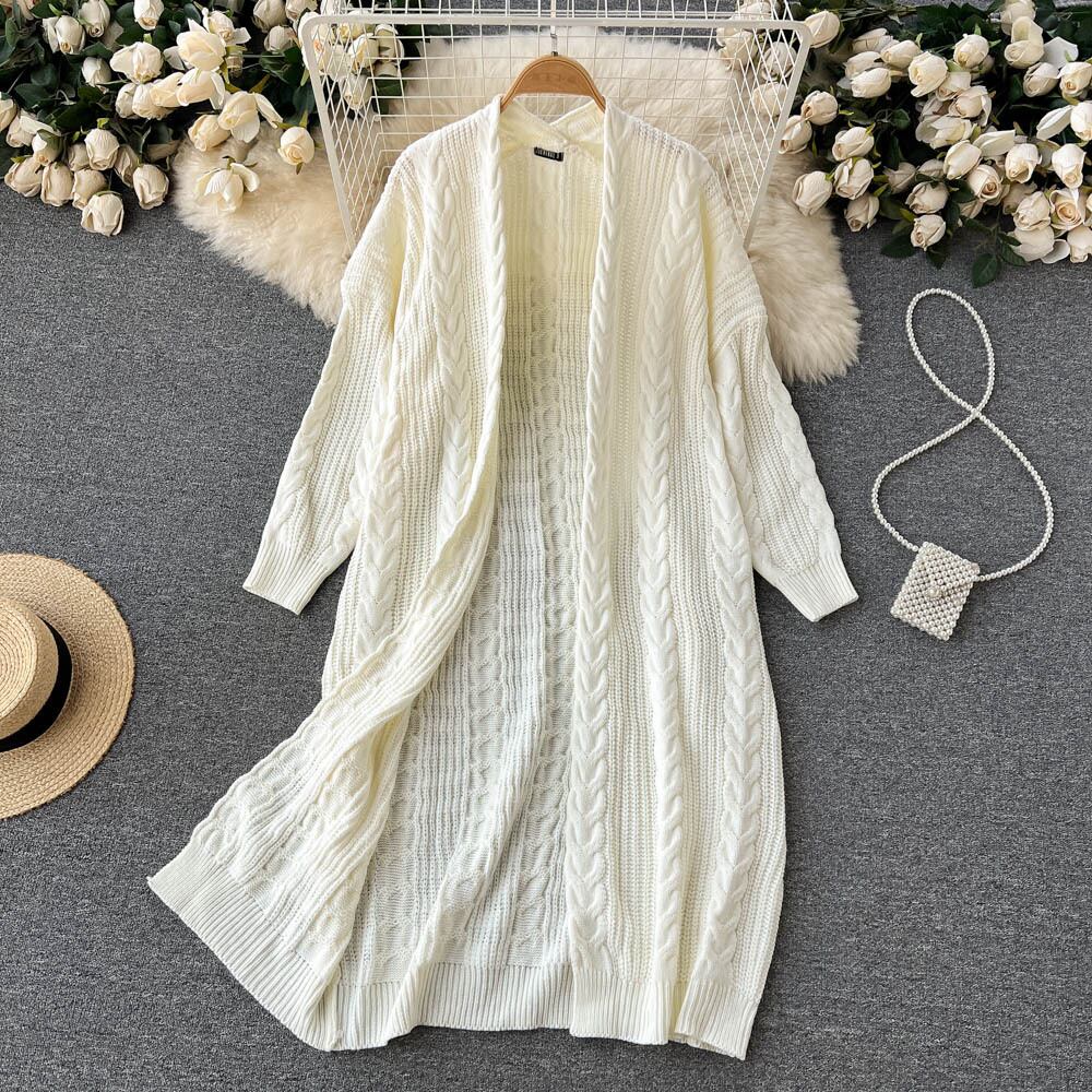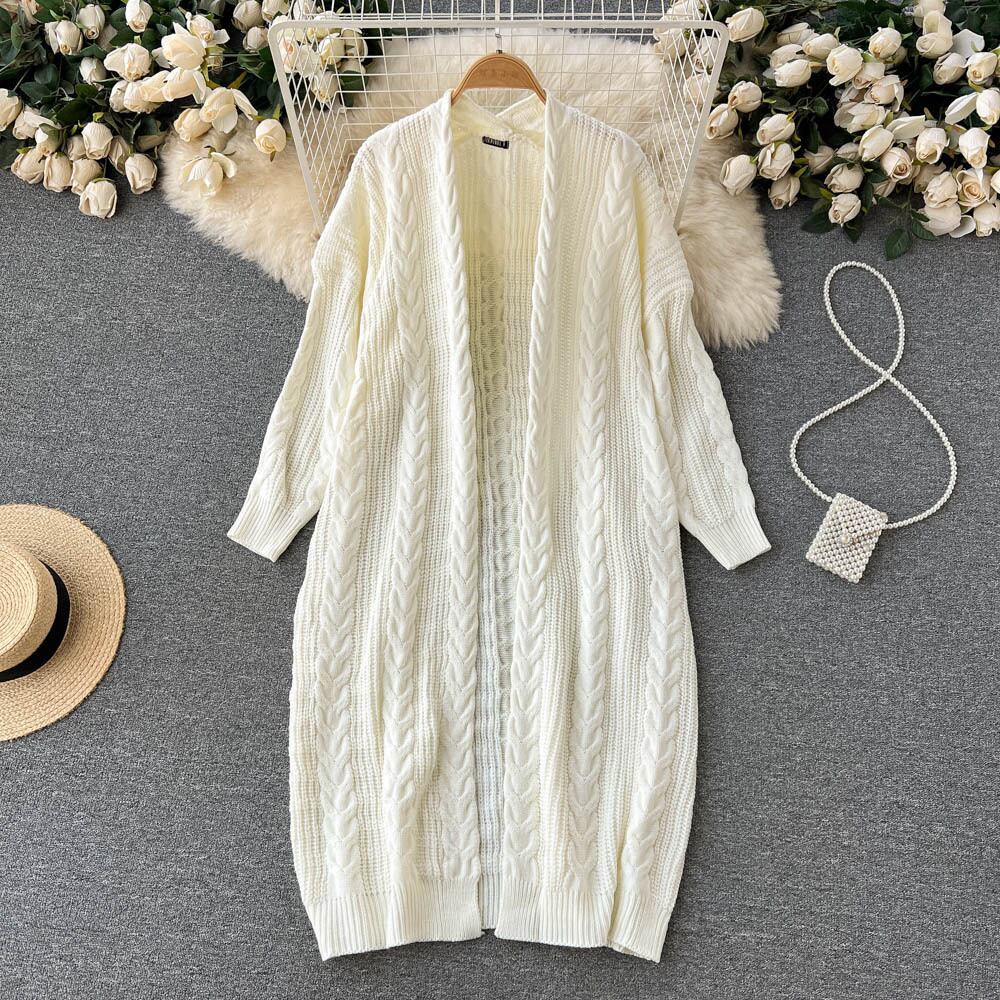 冬のロングニットカーディガンルーズショール生き抜く長袖太陽プルーフ女性ソリッドストリートセーター ウィンター 冬物 ソリッドカラー Abe99343812233