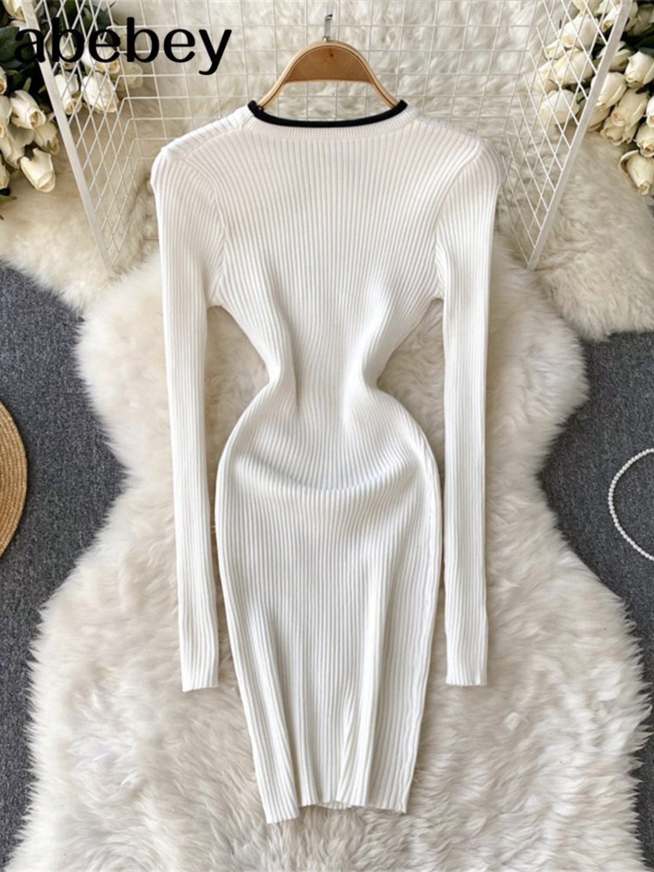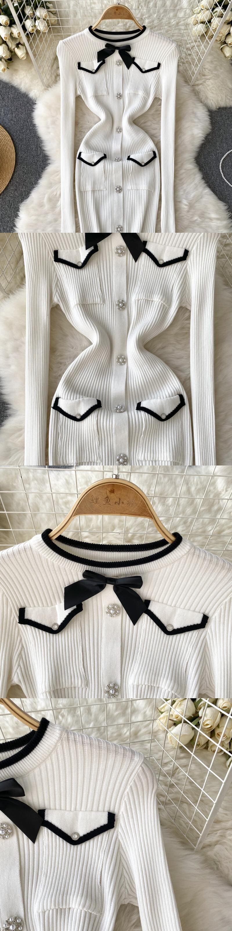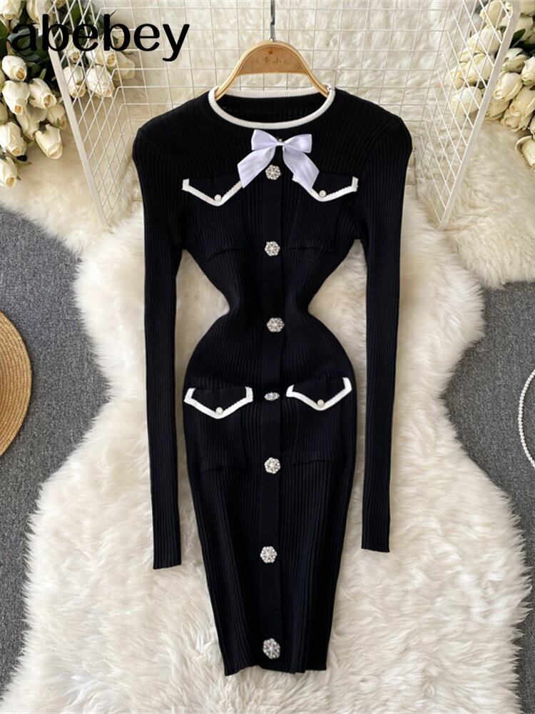 小さなフレグランスシースボディコン底セータードレス女性 2022 秋のニットドレスパーティー Vestidos オータム 秋物 Abe44569399728