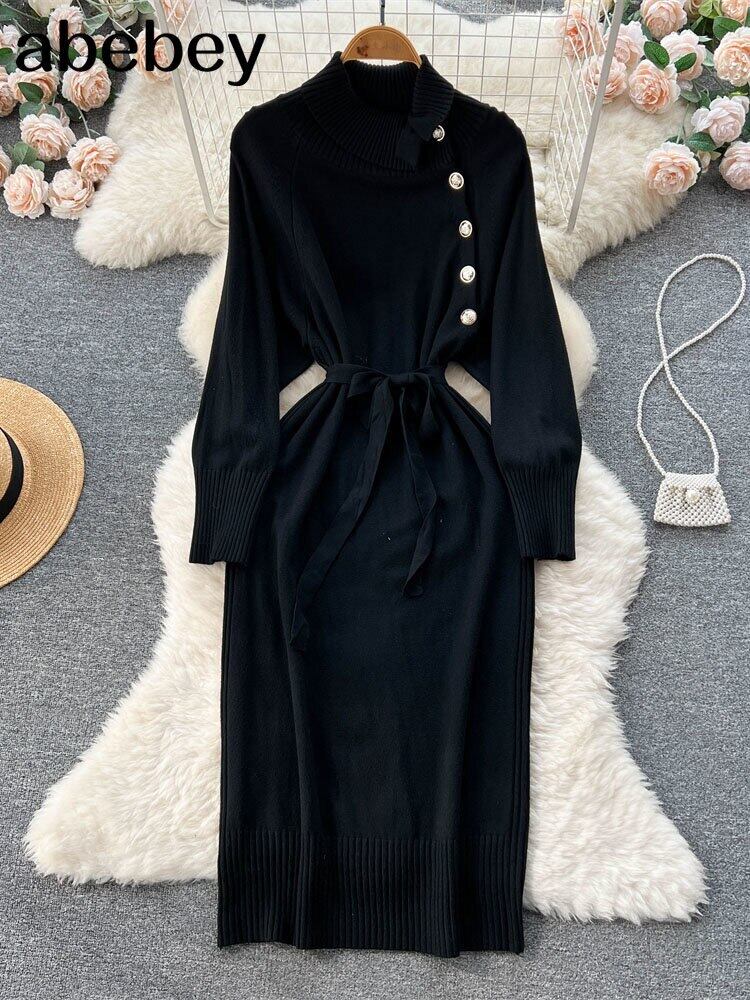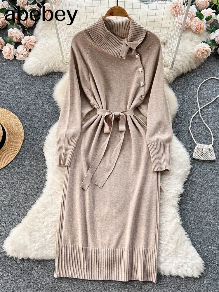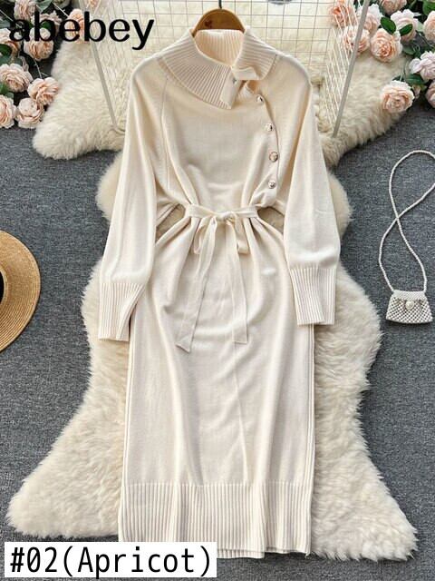 非対称緩い秋冬の女性のセータードレスロングレディウォームニットドレス オータム 秋物 ウィンター 冬物 Abe63328657524