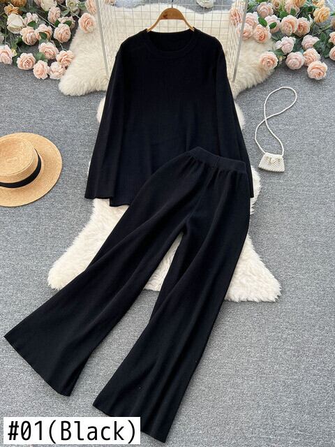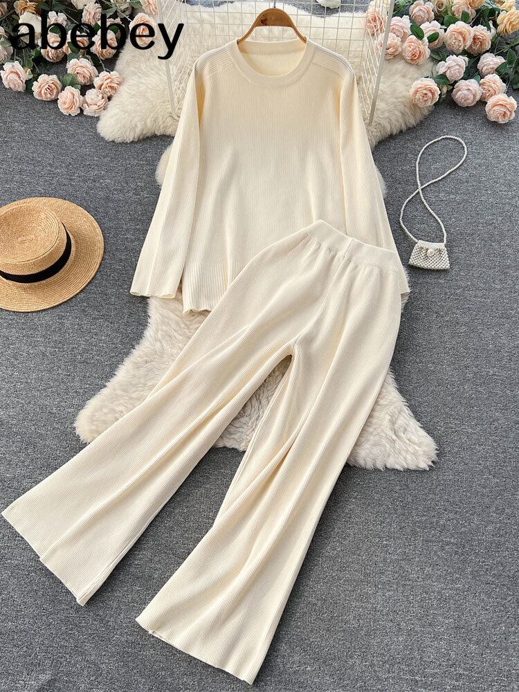 冬の女性のトラックスーツセーター + ワイド LegsPants スーツ特大ツーピースセットスポーツスウェットプルオーバー衣装 y2k シャツ ウィンター 冬物 ワイドレッグ ワイドパンツ Abe70651310116