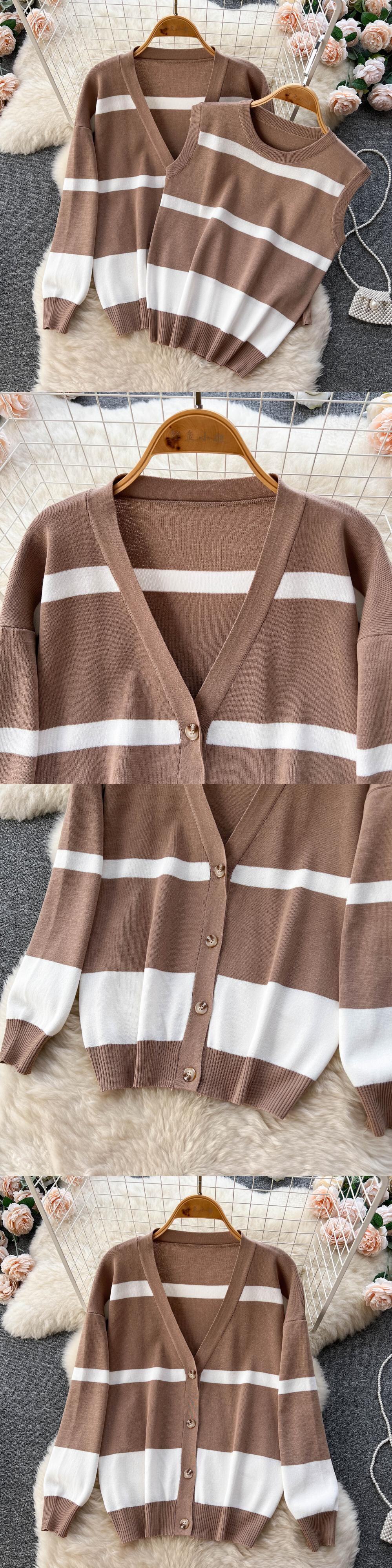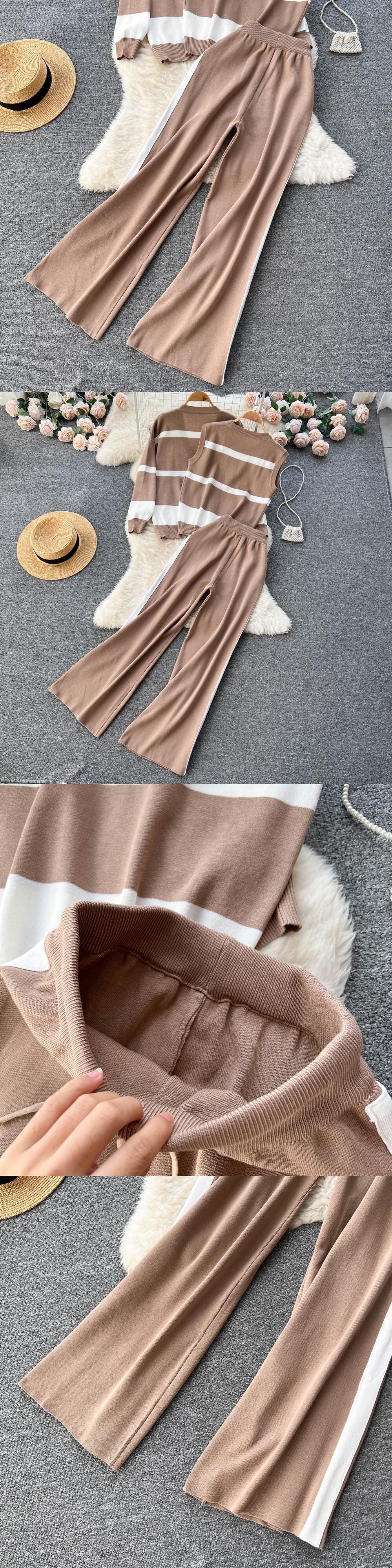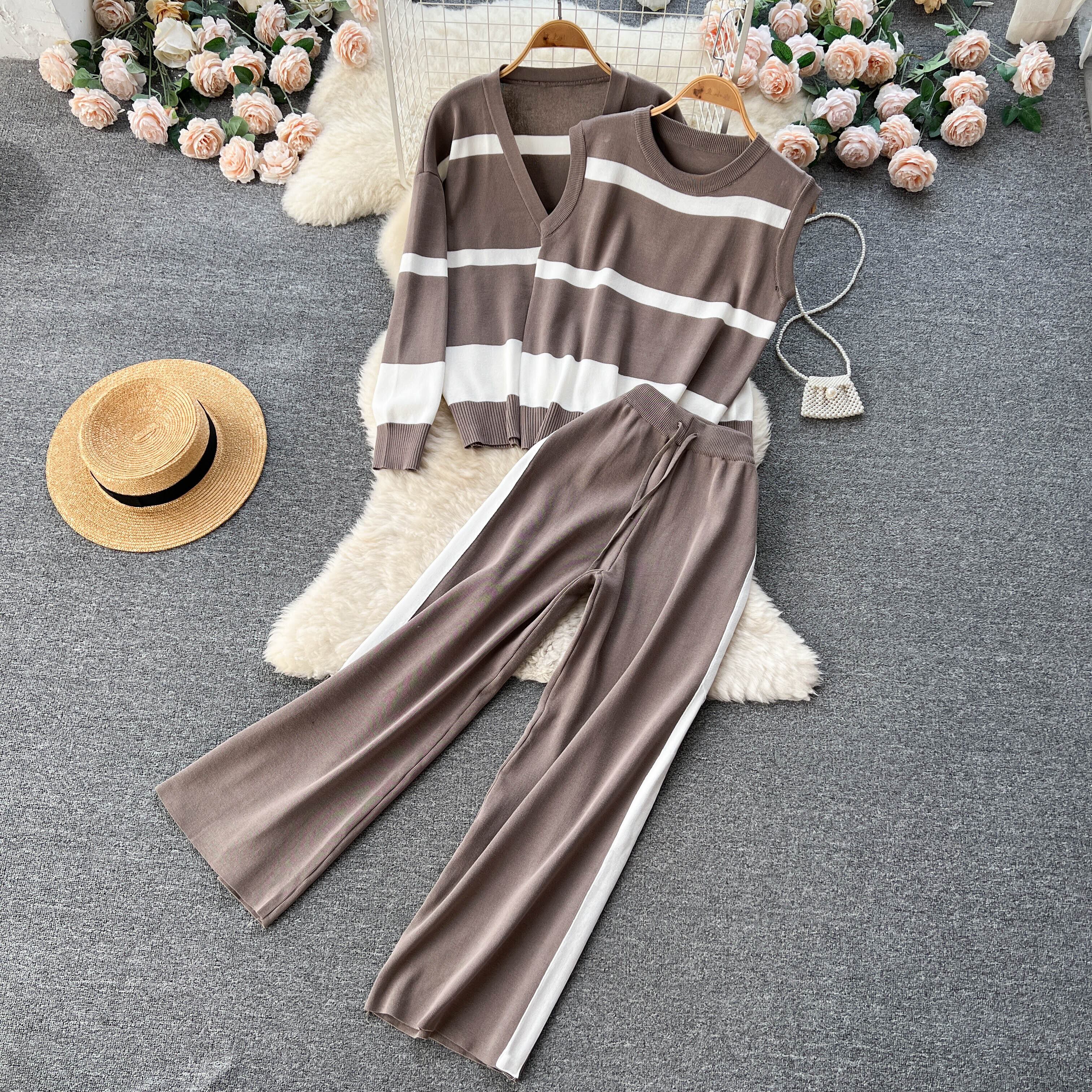 冬のニットスリーピーススーツ女性長袖ショールカーディガン + タートルネックセータータンクトップ + ワイドレッグパンツセット衣装 ロング ウィンター 冬物 ワイドパンツ Abe36717065996