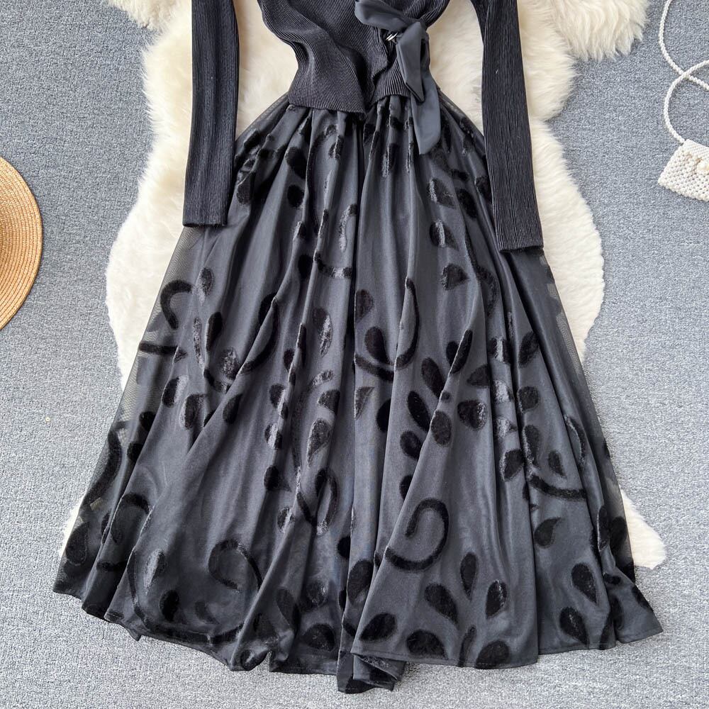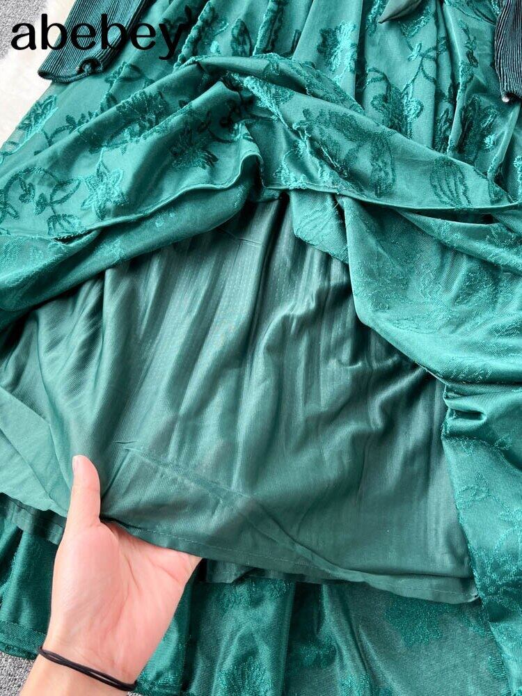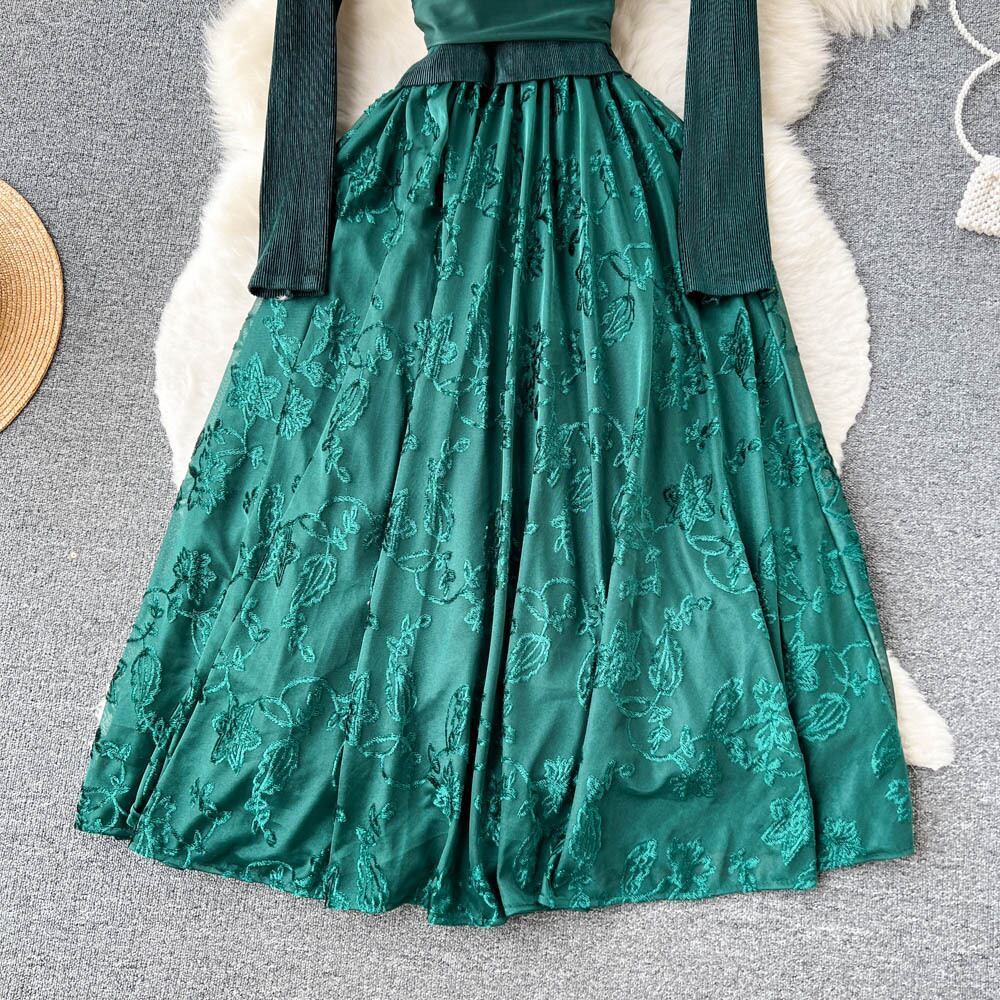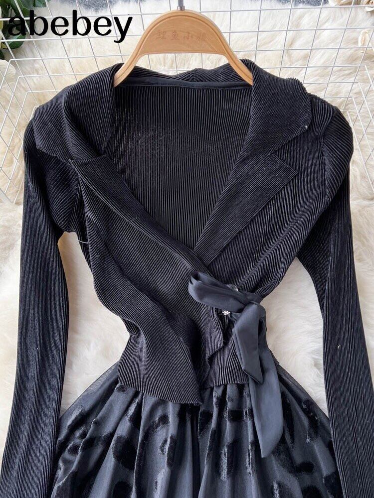 グラデーションカラープリーツパッチワークレースミディドレス女性春秋長袖パーティー Vestidos ロング スプリング 春物 オータム 秋物 Abe70193905884