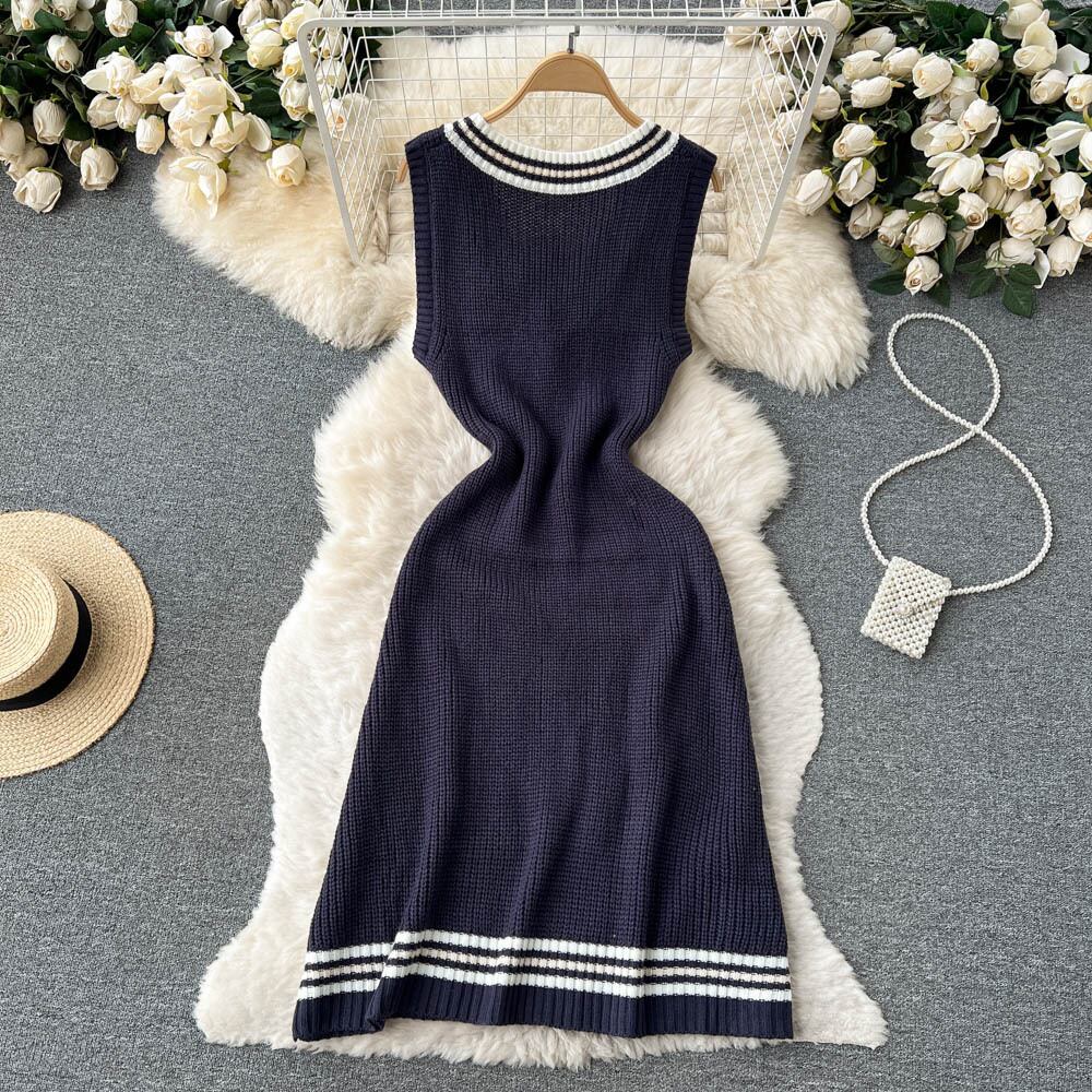 レトロ パネル ノースリーブ ドレス V ネック ルーズ 生き抜く スプリット セーター 冬の女性 ボディコン ロング ドレス ウィンター 冬物 Vネック Abe72668897000