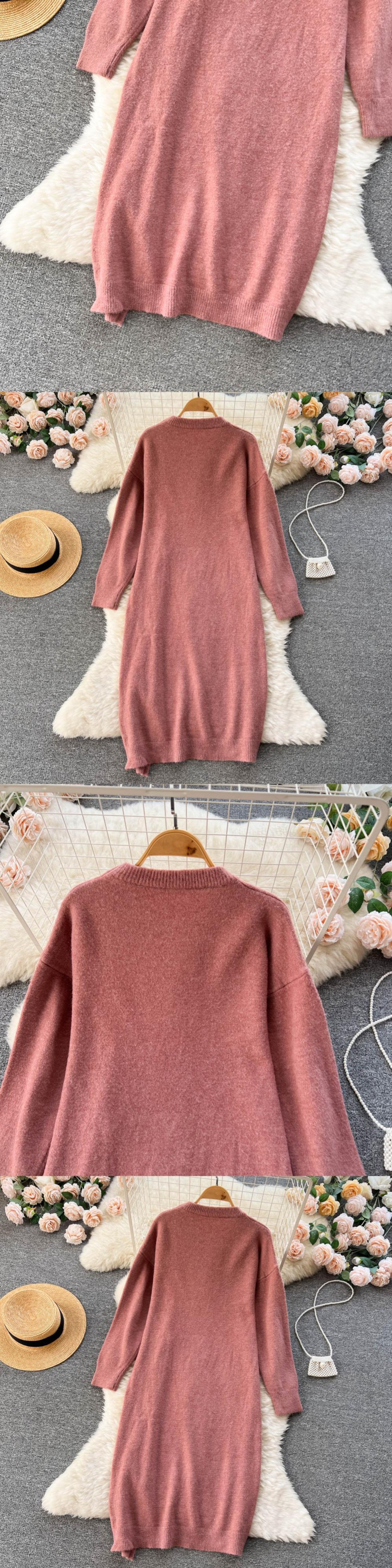 冬のルースセータードレス女性 O ネック長袖固体暖かいドレス 2022 スプリットニットドレス ロング ウィンター 冬物 Oネック ソリッドカラー Abe41054143708