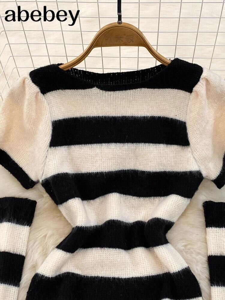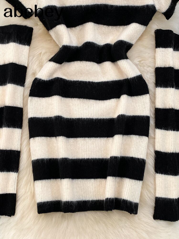 ストライプ ニット ドレス女性長袖 Y2k ミニ セーター ドレス パーティー ワンピース ドレス 2022 秋 ロング オータム 秋物 Abe18050073638