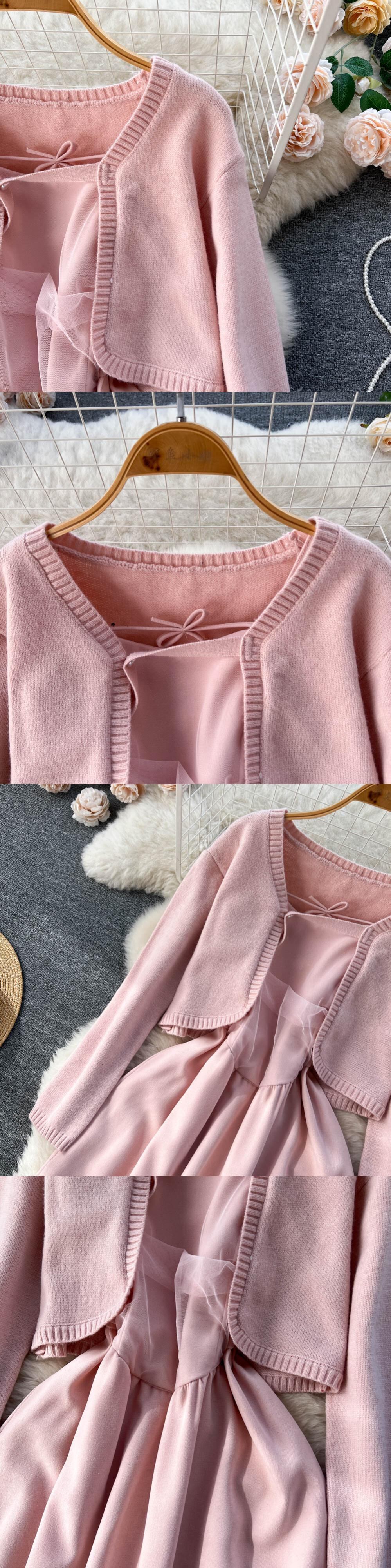 2022 固体長袖ニットセーターカーディガンとスパゲッティストラップボディコンミディドレススーツ女性二枚セット ロング ソリッドカラー Abe90259299182