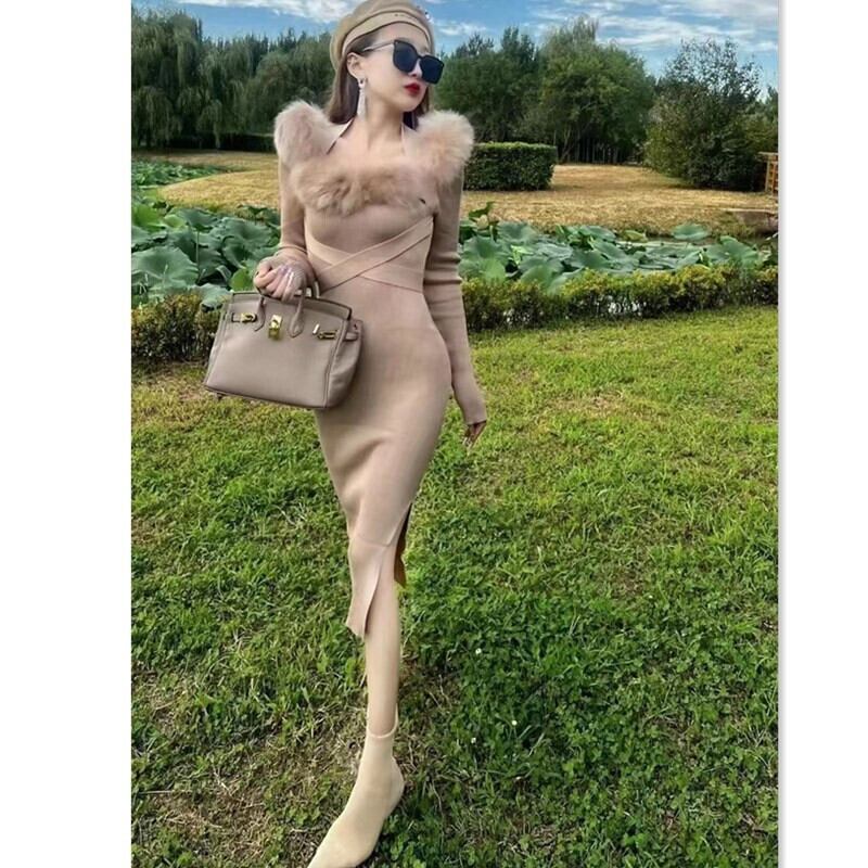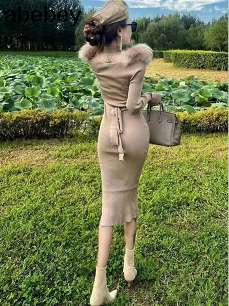 ドレス女性気質ローブスラッシュネックセーターニット包帯ボディコンマキシロングドレス 2022 Vestidos デ Abe58307297394