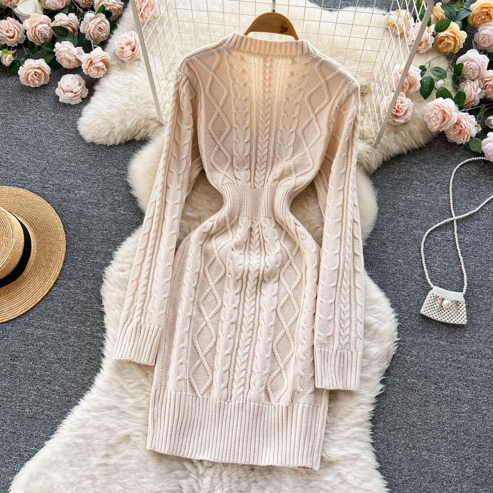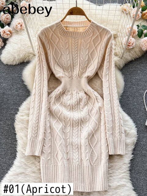 2022 ソリッドニットショートドレス O ネック長袖ボディコンドレス女性の冬のストリート OL 暖かいドレス ロング ウィンター 冬物 Oネック ソリッドカラー Abe3124061061