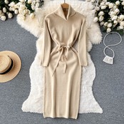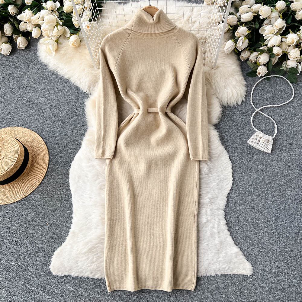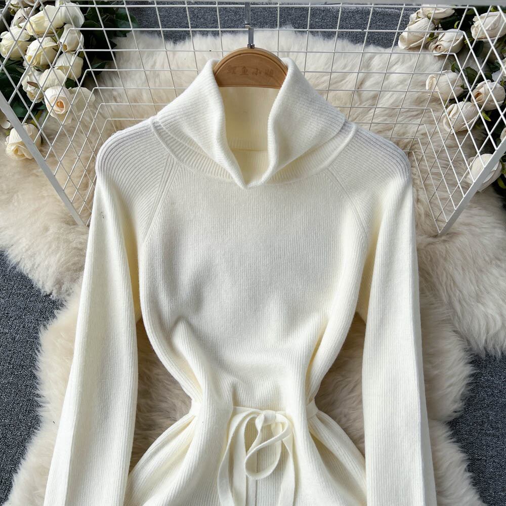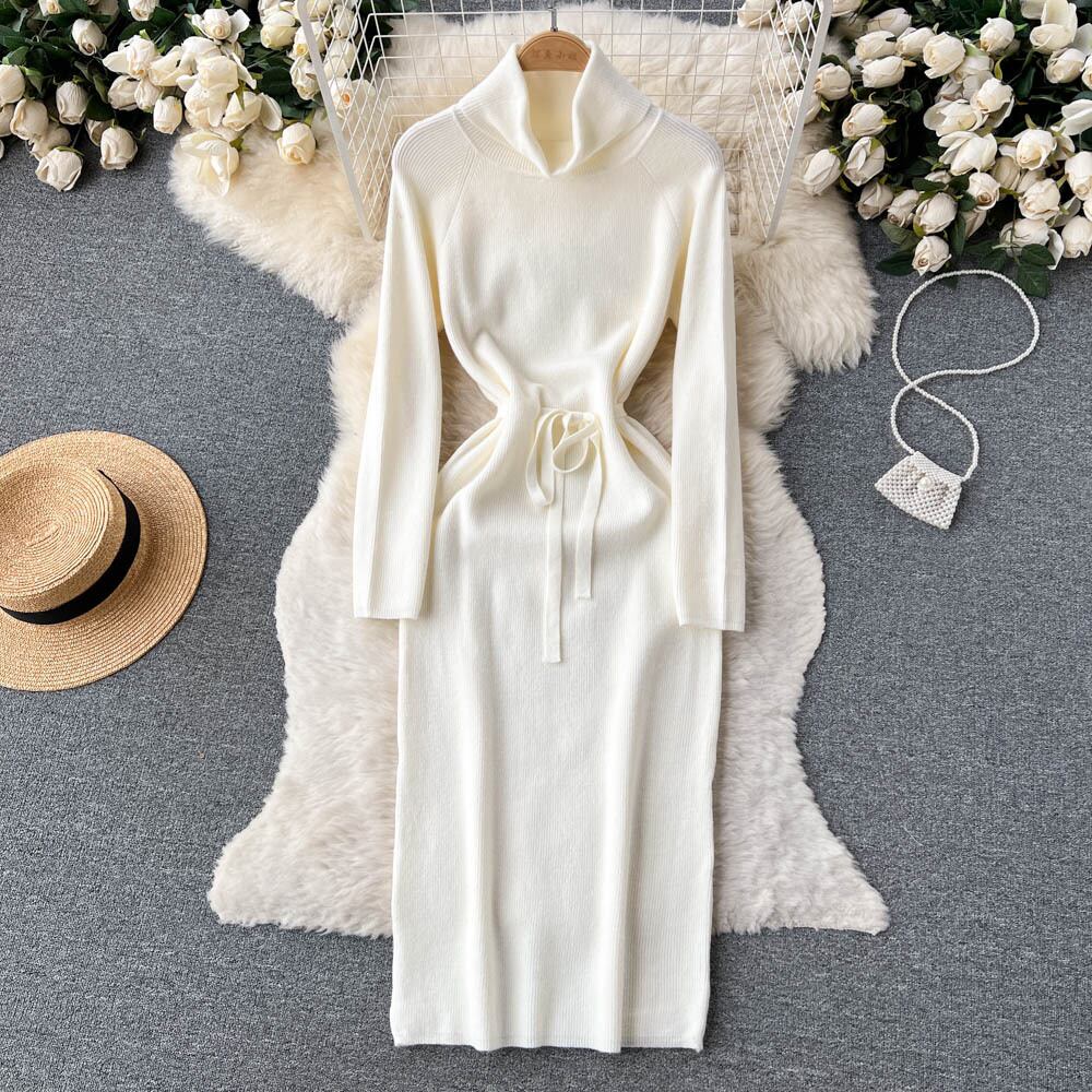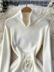 冬の厚みのタートルネックセータードレス女性レースアップニットロングドレスニットソフト Vestidos 2022 ウィンター 冬物 Abe39668616376