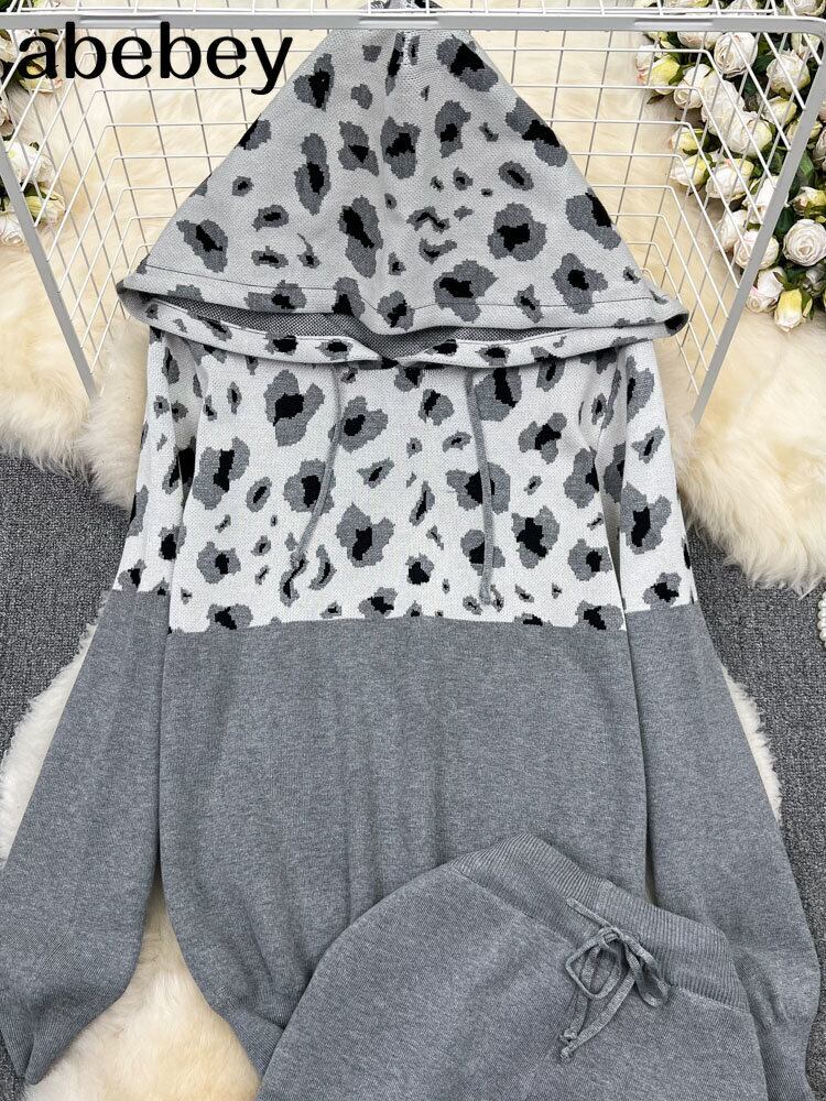 冬のニット二枚 Sutis フード付き長袖セーター + 弾性長ズボンセット女性セーターセット衣装 ロング エラスティック 伸縮 ウィンター 冬物 Abe63054653238