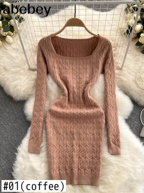 優しい秋冬ボトムスリムラップヒップスクエアカラーロングスリーブホワイトニットドレス女性ミニセクシーなワイルドソリッドローブツイスト 長袖 オータム 秋物 ウィンター 冬物 ソリッドカラー スクウェア Abe44749063212