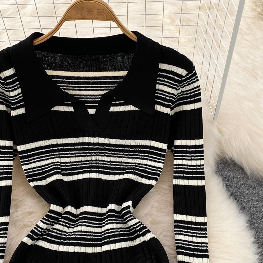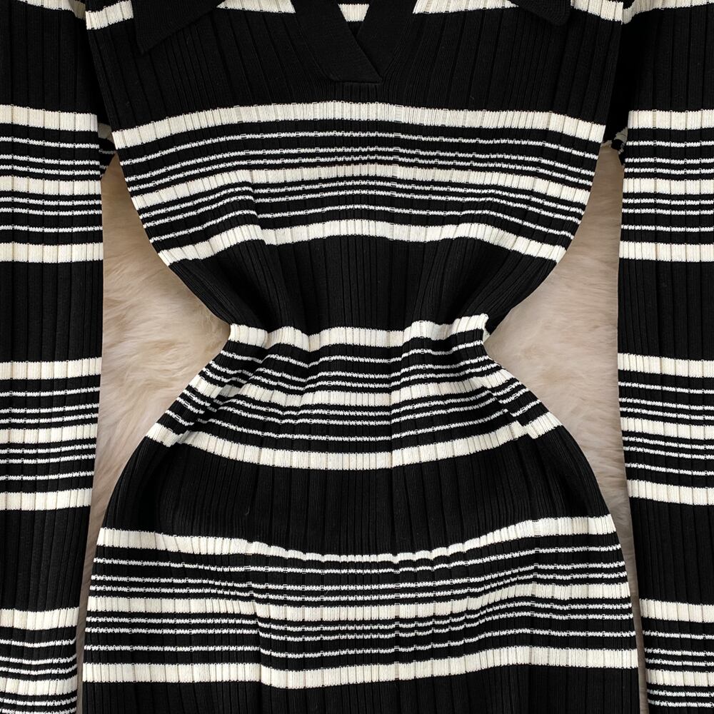 ドレス女性オフィスターンダウン襟 V ネックロングドレスシックな厚みのある暖かい秋冬ドレス ウィンター 冬物 Vネック 会社 学校 通勤や通学にも Abe50849999667