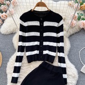 2022 est秋長袖ニットoネックカーディガンセーター+女性ウエストスカートニット2点セット ロング オータム 秋物 Abe52346108181