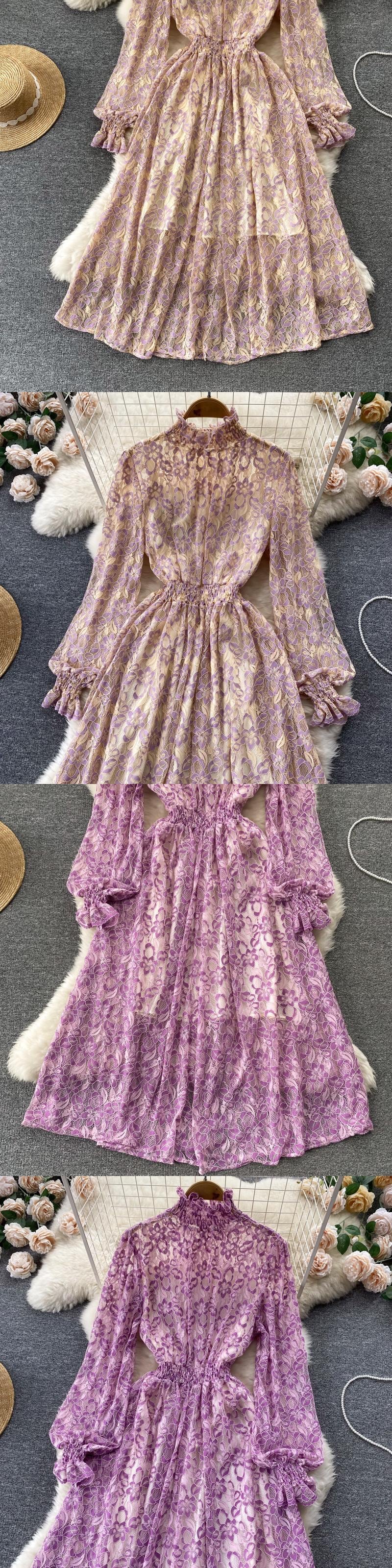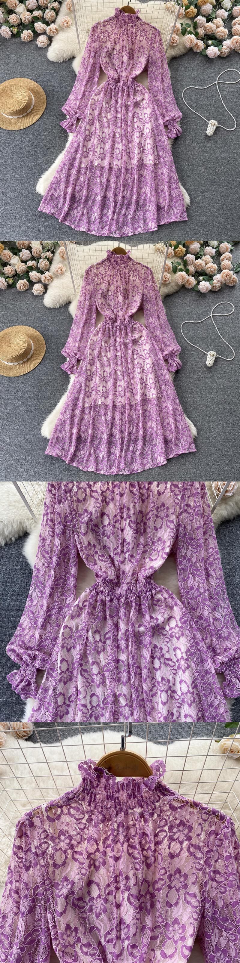 女性の中空アウト ドレス パープル レースアップ スリム ドレス Vestido 気質甘いシックな夏 2022 大人ガーリー スウィート キュート カジュアル サマー 夏物 Abe44244594939