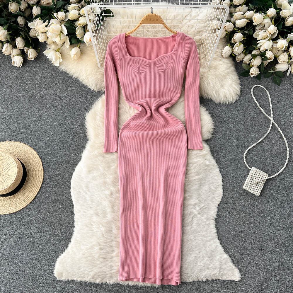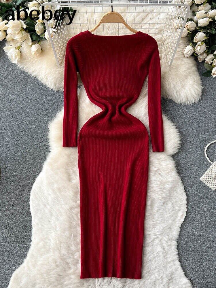 2022 ドレス女性のセクシーなストラップレスリブニットボディコンドレスの女性の冬のミドルスリーブミディセータードレス服 ウィンター 冬物 Abe15953941399
