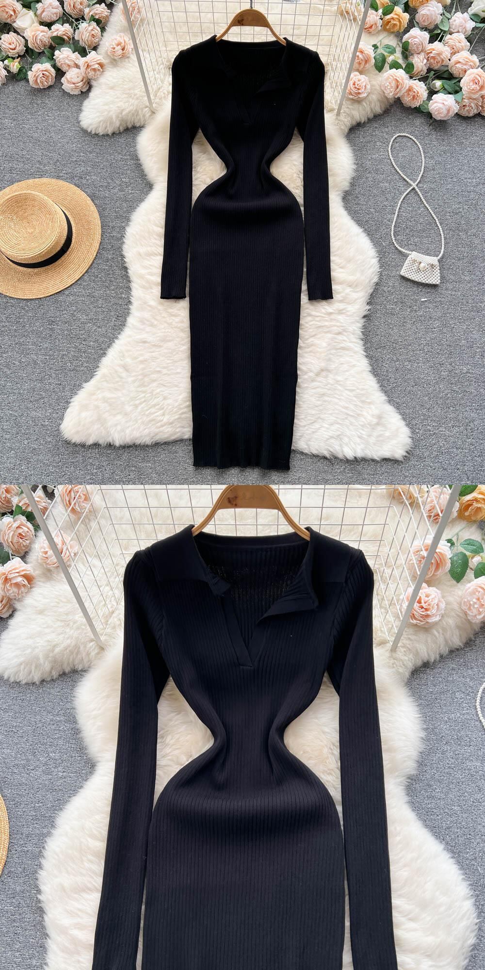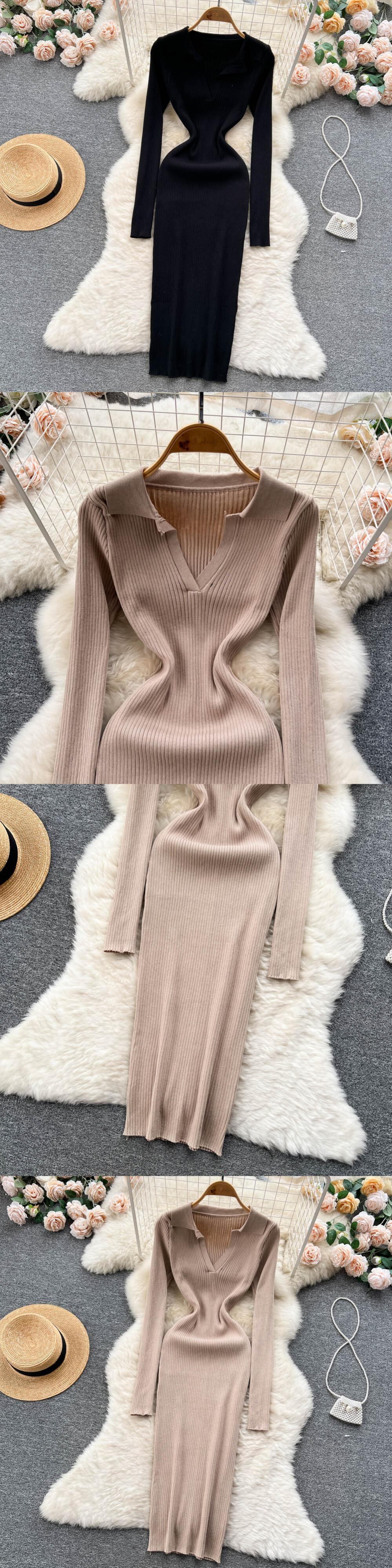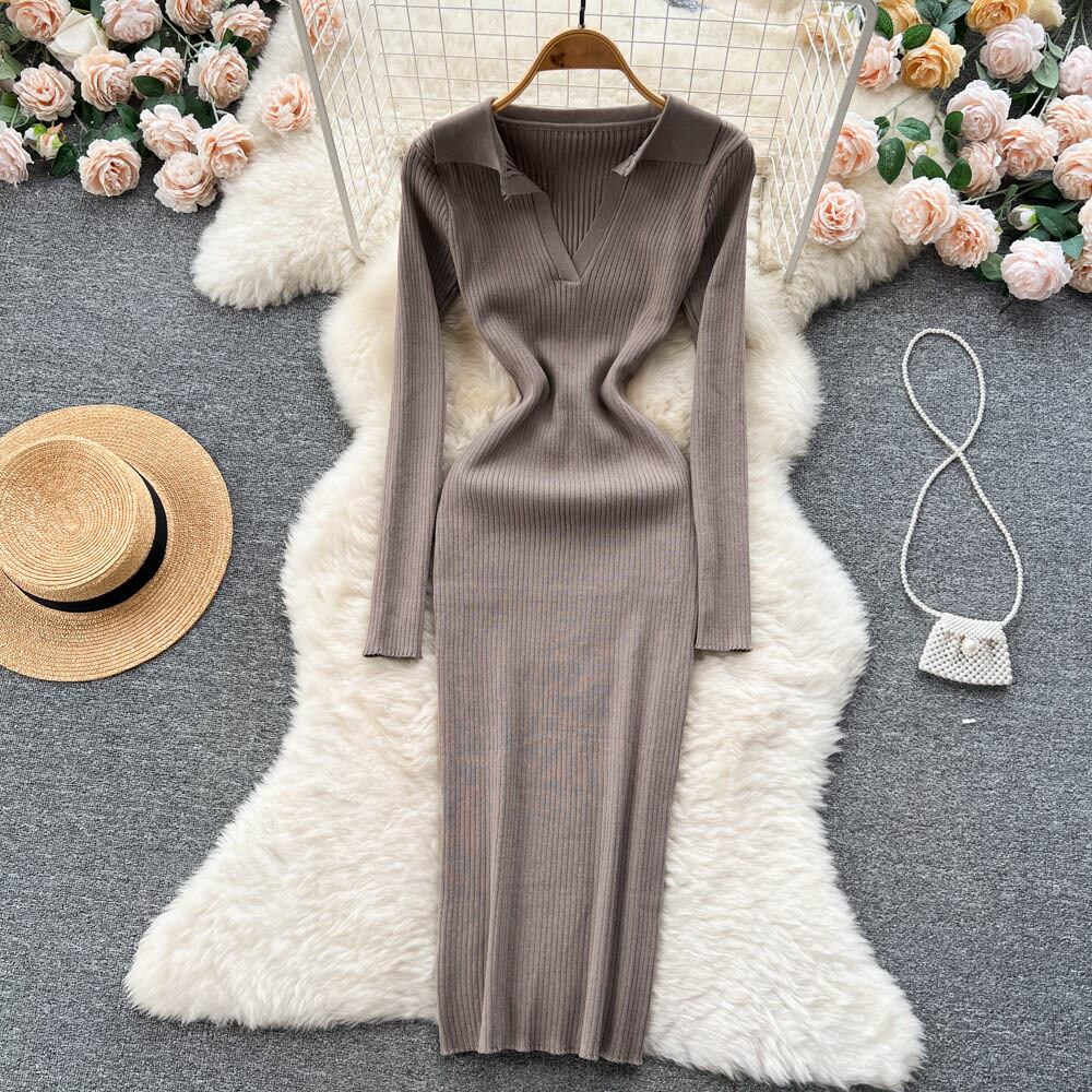 固体セクシーなセータードレス 2022 女性長袖マキシロングドレス秋のストリートニットボディコンドレス オータム 秋物 ソリッドカラー Abe23189786644