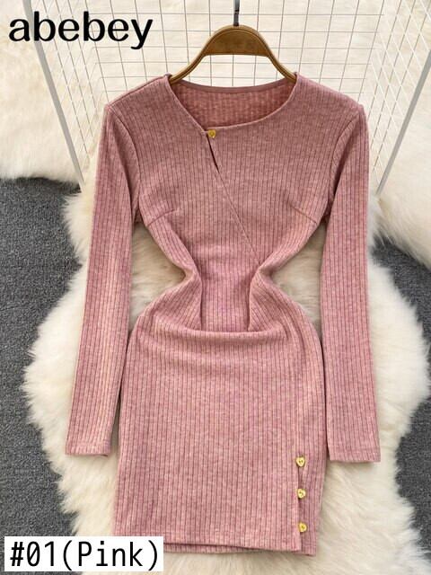 女性ニット厚いミディドレス秋冬長袖 V ネックボディコン暖かいドレス 2022 ロング オータム 秋物 ウィンター 冬物 Vネック Abe79342223689