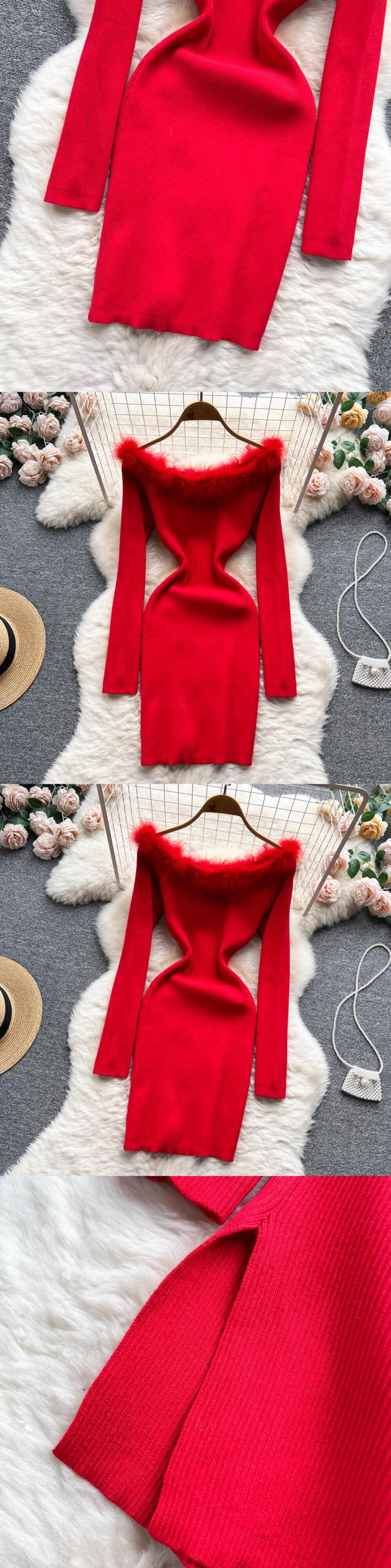 固体セクシーなセータードレス 2022 女性スラッシュネック長袖ミディロングドレス秋のストリートニットボディコンドレス オータム 秋物 ソリッドカラー Abe20659485949