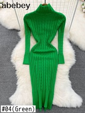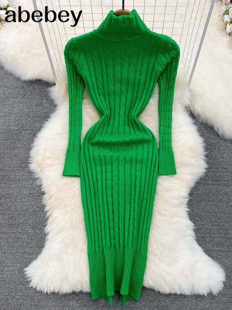 秋のタートルネック ニット ドレス長袖スリム固体弾性暖かいドレス 2022 ミディ セーター ドレス ロング エラスティック 伸縮 オータム 秋物 ソリッドカラー Abe24458652673
