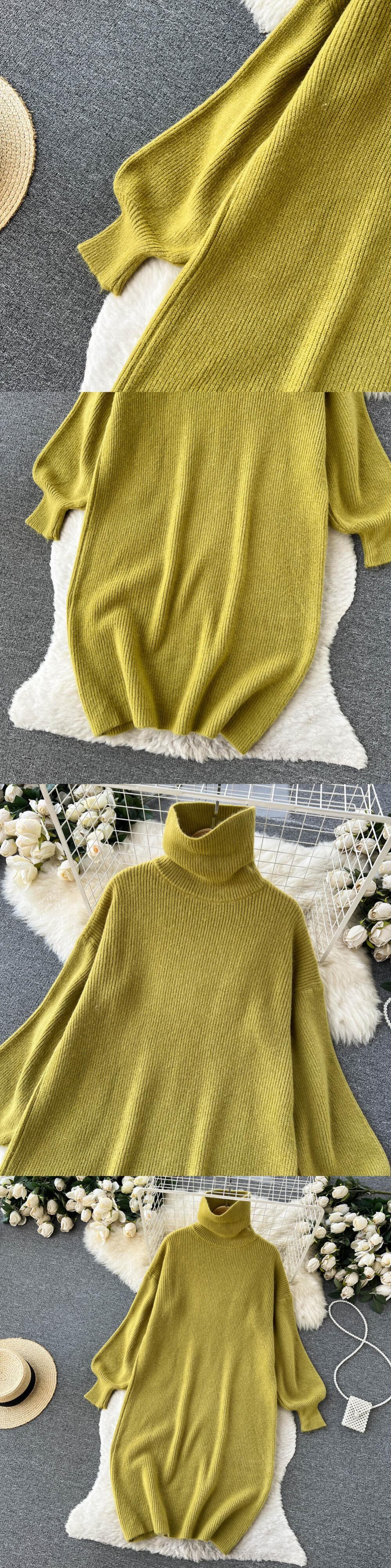 特大カシミヤ タートルネック ニット プルオーバー ドレス女性の冬の固体暖かいセーター ドレス ドレス ウィンター 冬物 ソリッドカラー Abe15053692971
