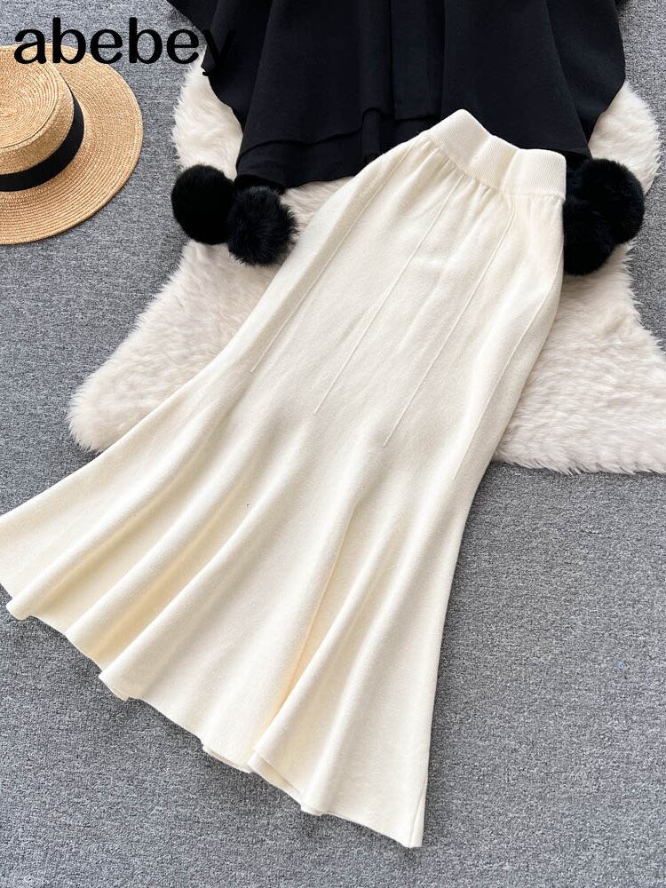 ツーピースセット女性スカート長袖カーディガントップス + マーメイドスカート 2 点セット女性女性セーター + ニットスカートセット冬のスーツ ロング ウィンター 冬物 Abe79169481908