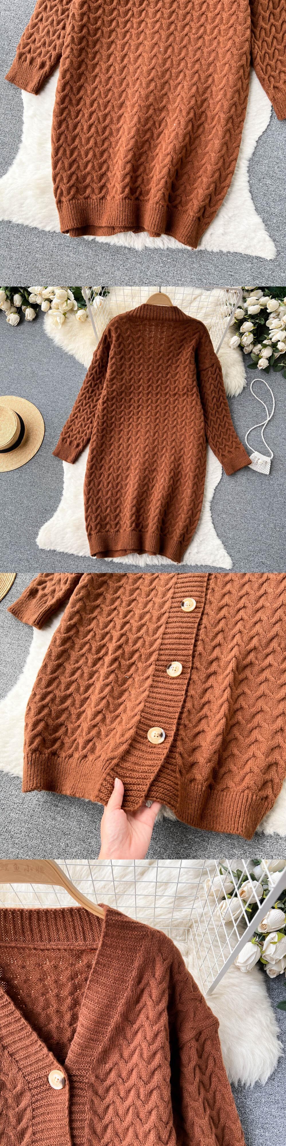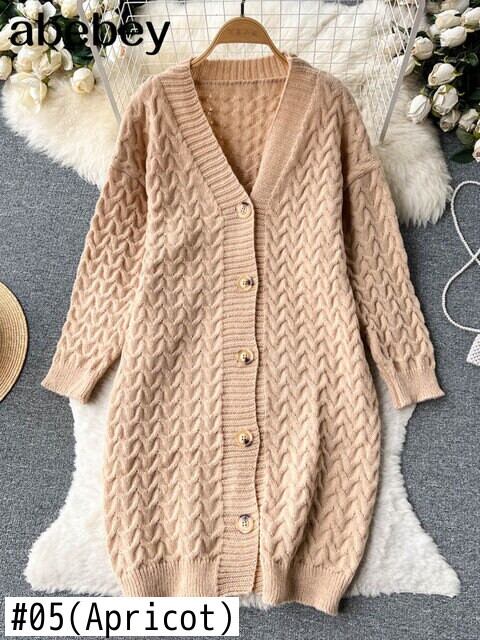 大きく厚く暖かい固体冬の女性のセーターコート緩いカーディガンミッドレングス膝ニットスタイルジャケット ウィンター 冬物 ソリッドカラー Abe33247245428