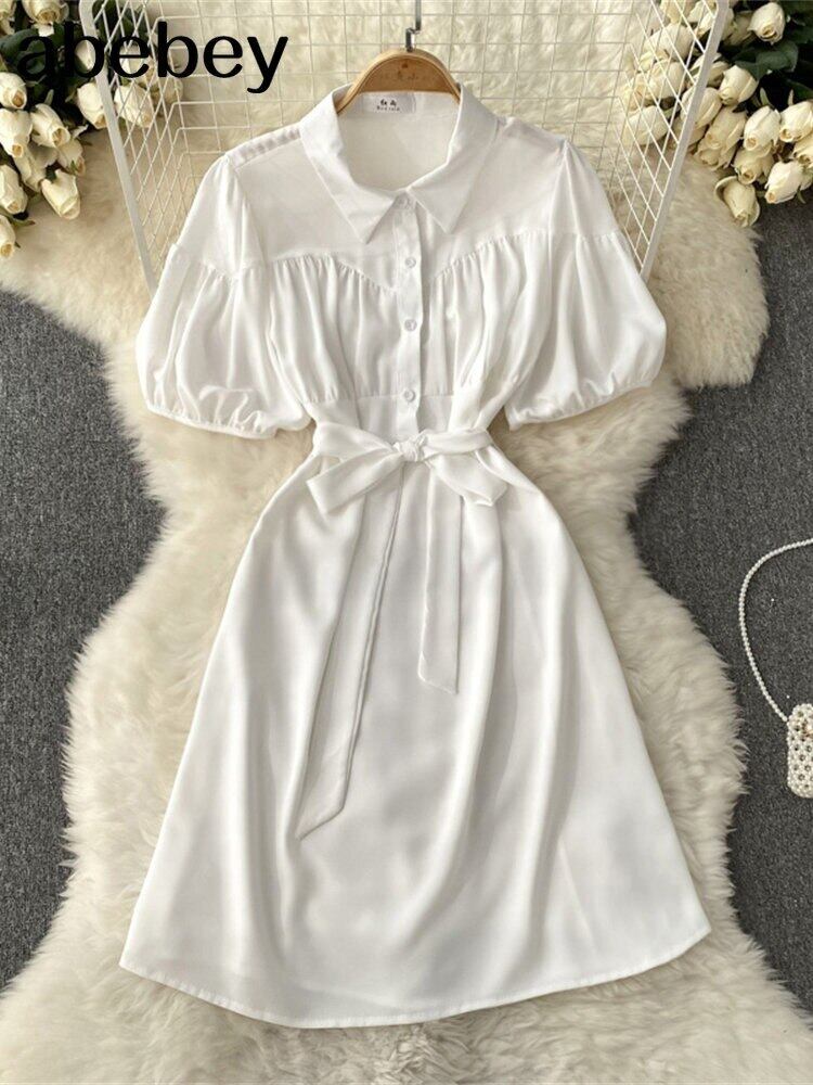 シャツドレス女性夏半袖白ベルト Vestidos 紫オフィスローブ Ete ショート ホワイト ハーフスリーブ サマー 夏物 ハーネス パープル 会社 学校 通勤や通学にも Abe33528451445