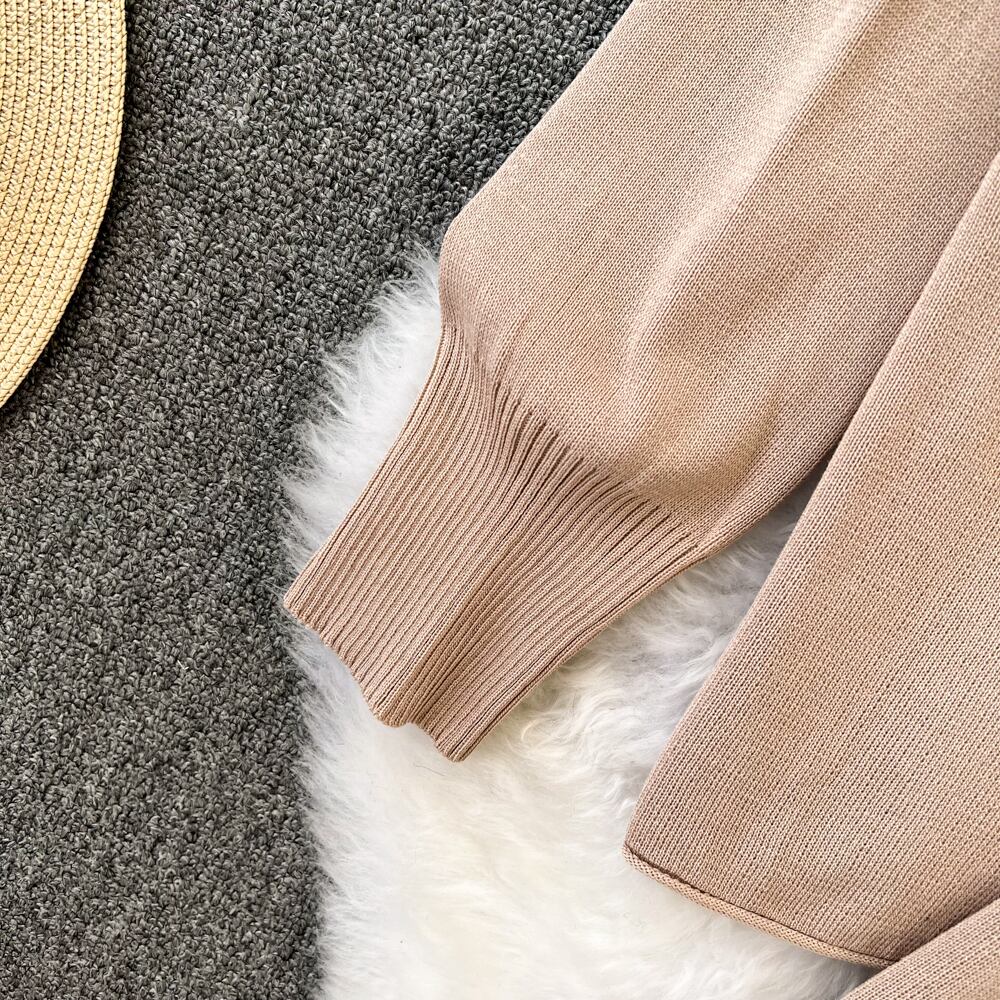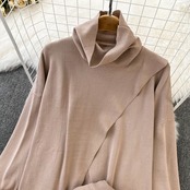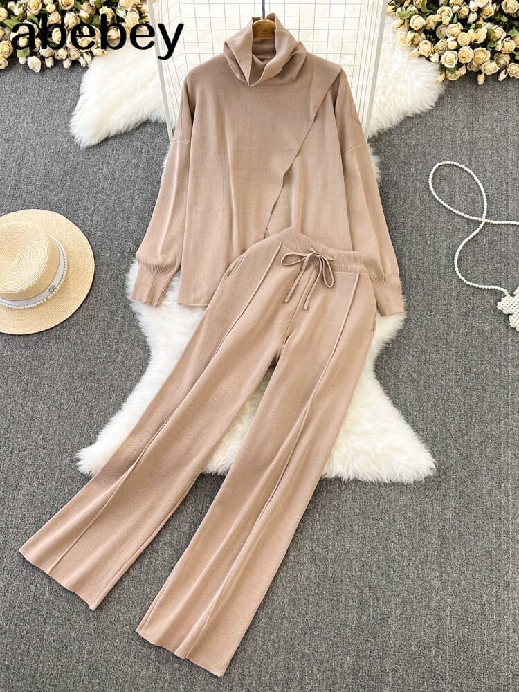 女性タートルネックニットスーツ長袖ルーズセーター + 弾性ワイドレッグロングパンツ冬 OL 暖かい 2 点セット エラスティック 伸縮 ウィンター 冬物 ワイドパンツ Abe32174573755