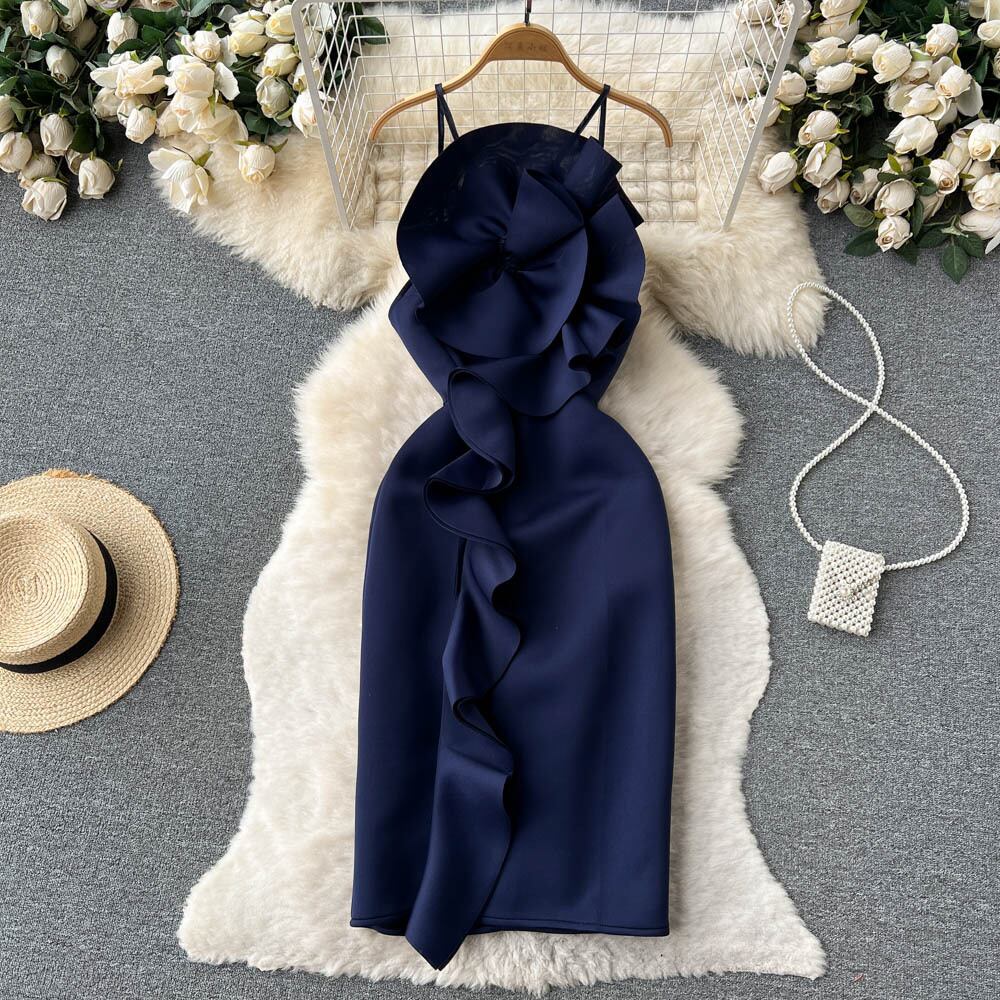 女性のセクシーなパーティードレススパゲッティバックレスフリルペンシルショートウエディングサマードレスイブニングディナー誕生日 夏物 Abe51386441787