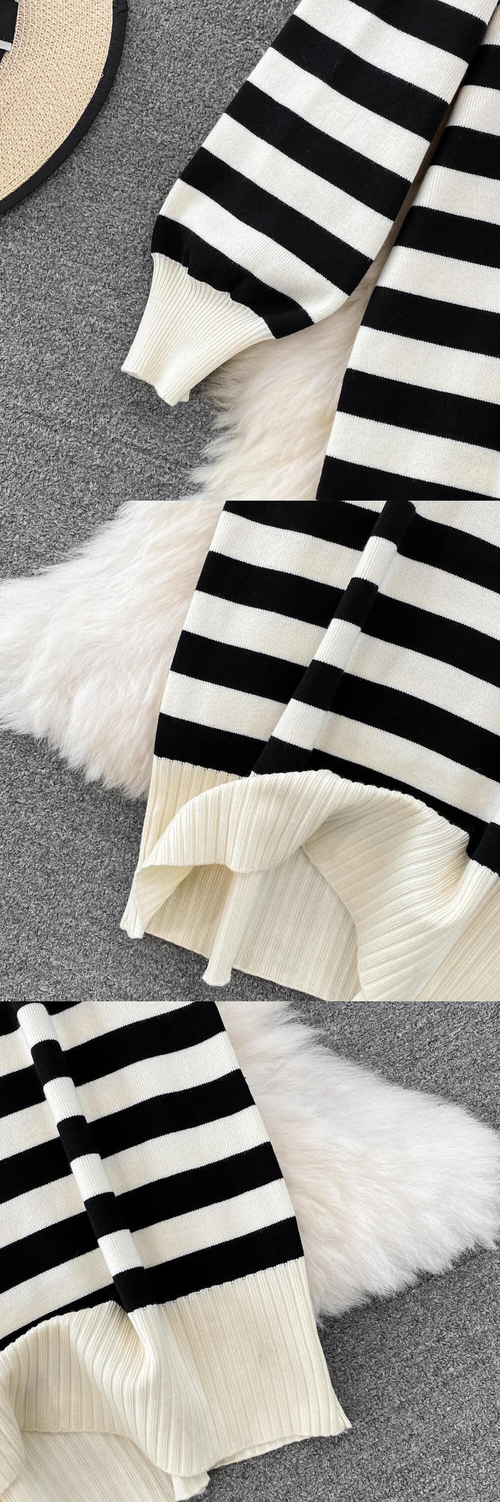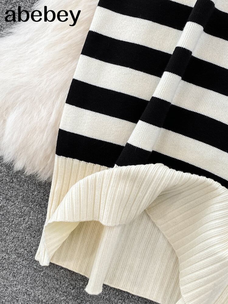 レトロ気質ドレス女性秋冬フード付きネイビーラペル服 2022 シックなルース A ラインニットドレス オータム 秋物 ウィンター 冬物 Aライン Abe41319627108