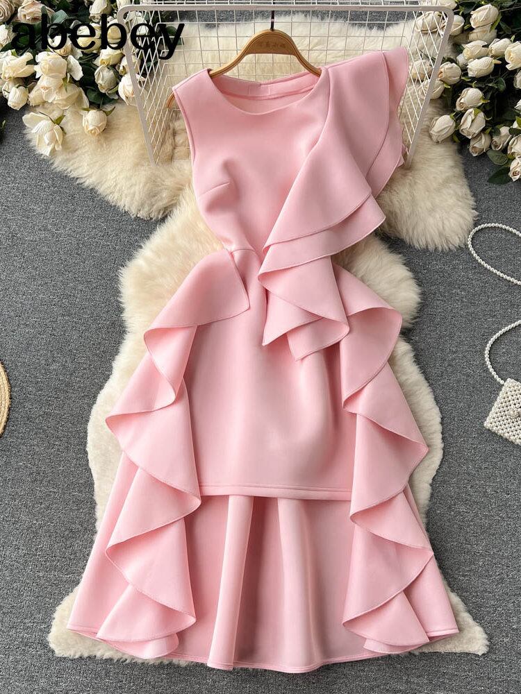 女性のパーティードレス不規則な長さのフリルイベントナイトオケージョン O ネックナイトアウトサマーガウンローブアフリカンイブニング ラッフル 夏物 Oネック Abe60894569854