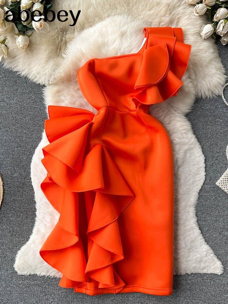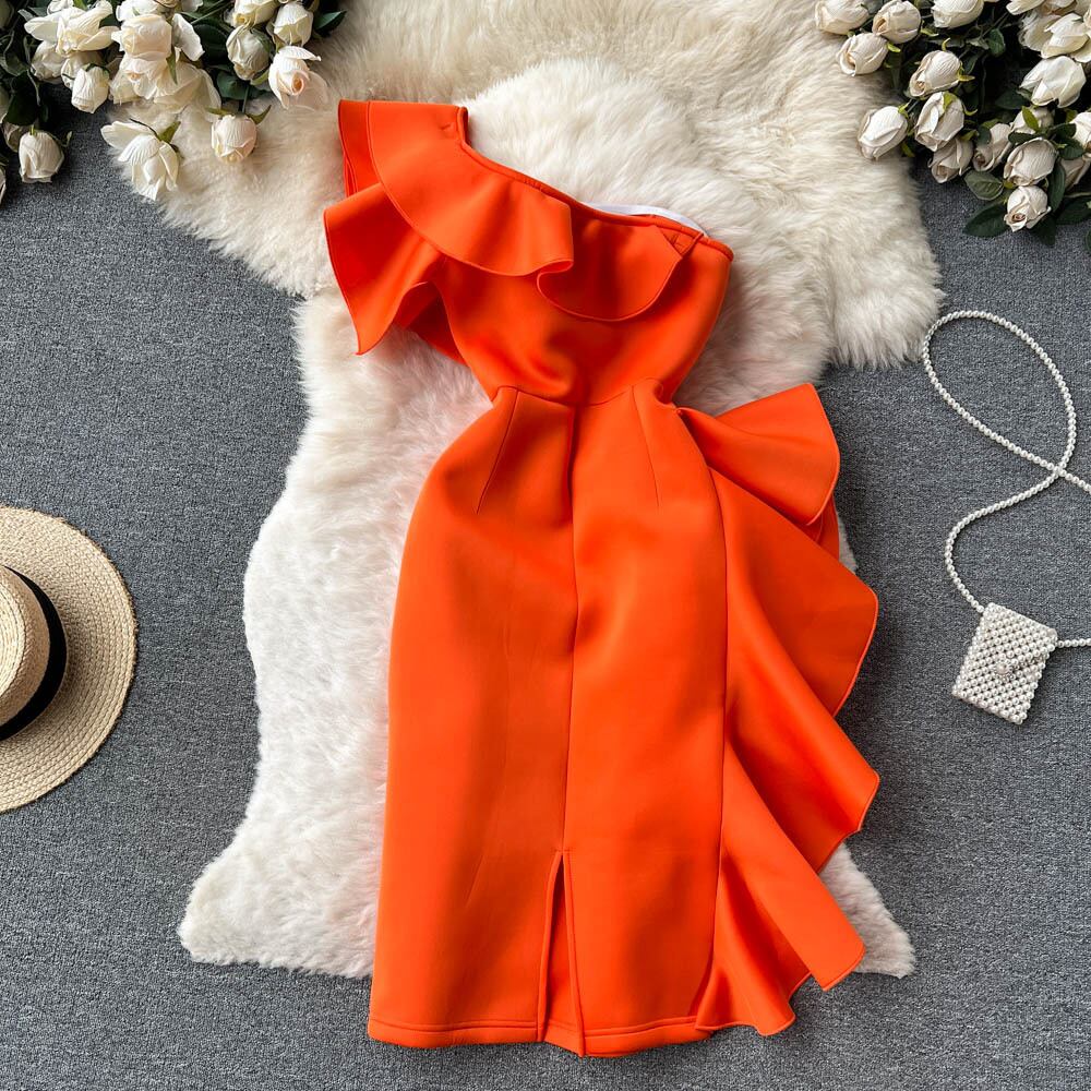 女性気質セクシーな斜め襟オフショルダー片面サスペンダーフリルドレス春夏 2022 スプリング 春物 サマー 夏物 Abe34514007094
