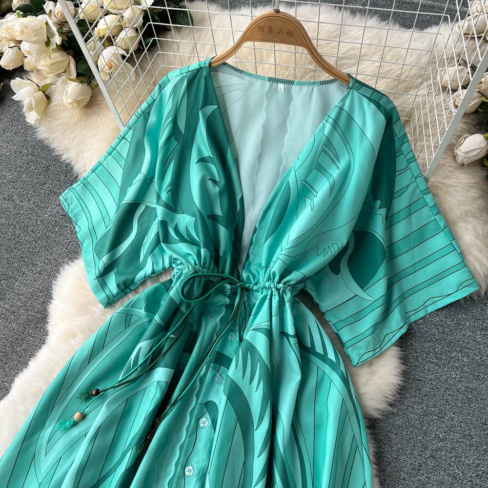 サマープリント女性ドレス特大ホリデービーチドレス自由奔放に生きるロングカバーアップドレスロングスリーブルーズチュニックドレス 長袖 夏物 Abe88096834570