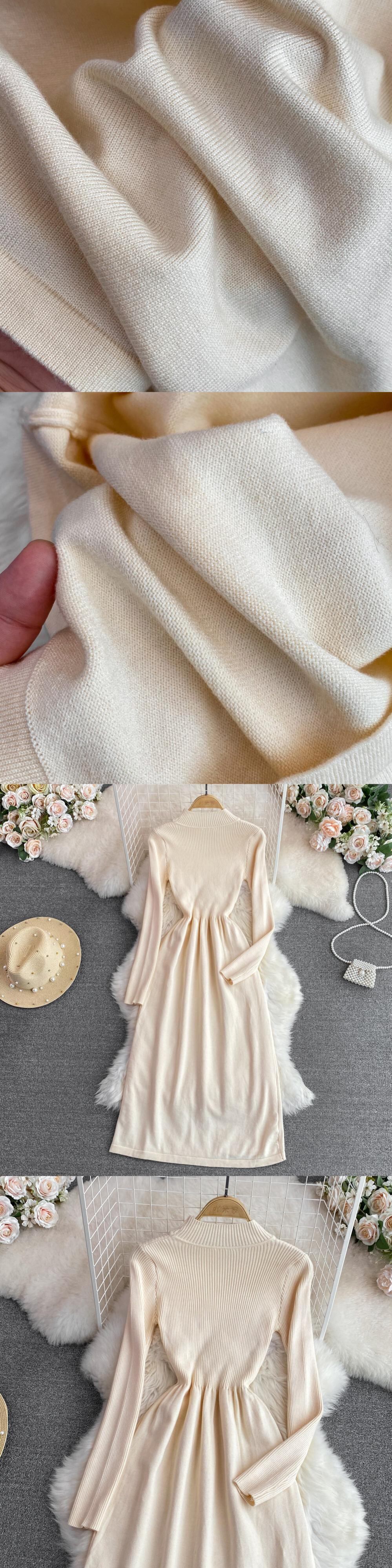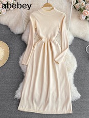 2022 シックな女性ロングニットマキシセータードレス秋冬ニット A ラインドレスリブ厚いクリスマスプルオーバーパーティードレス オータム 秋物 ウィンター 冬物 Aライン Abe8678383651
