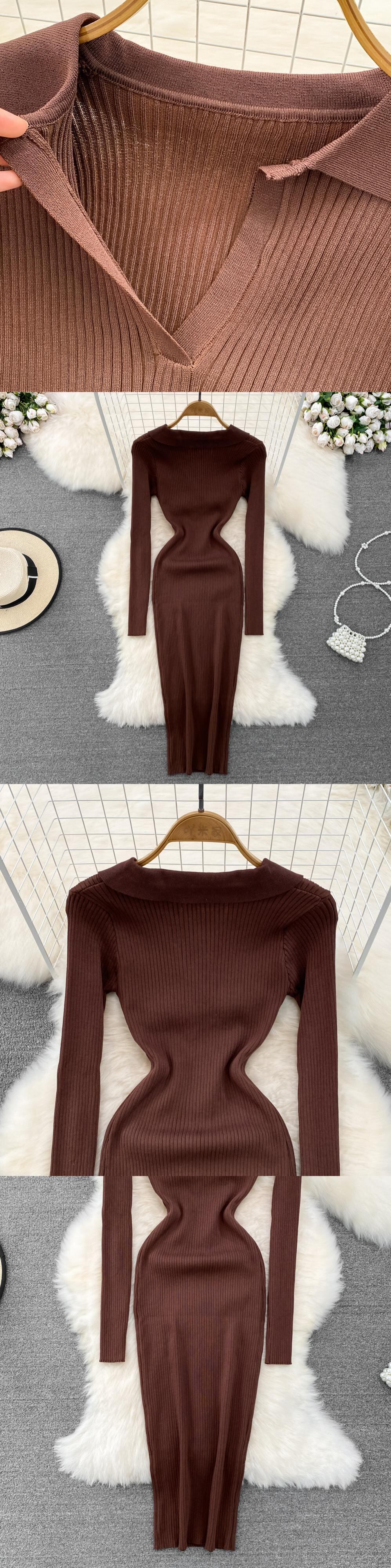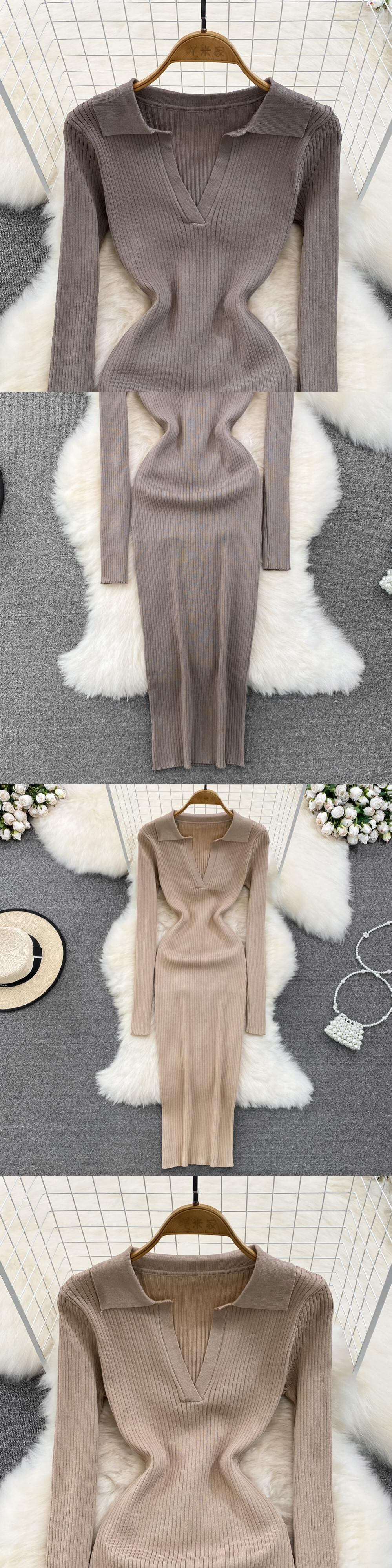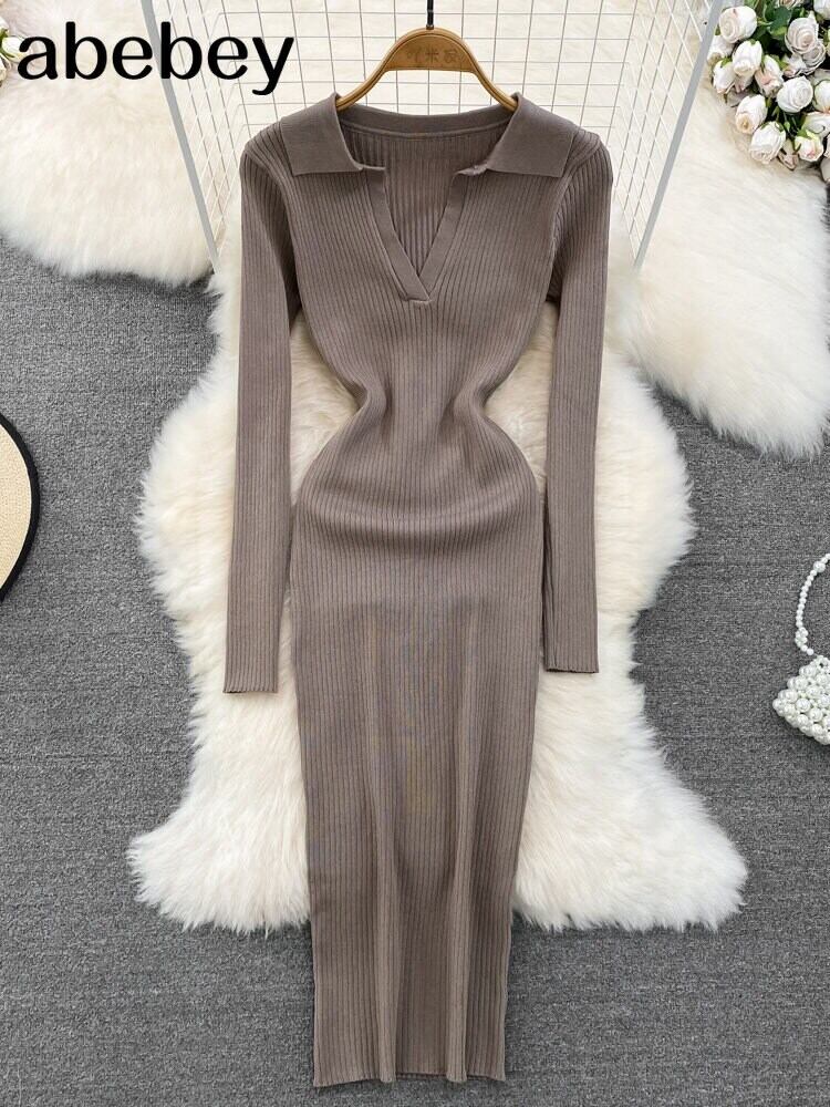 女性ニットドレス長袖 V ネック弾性スリムペンシルドレス 2021 秋のセクシーなボディコンセータードレス ロング エラスティック 伸縮 オータム 秋物 Vネック Abe65208990190
