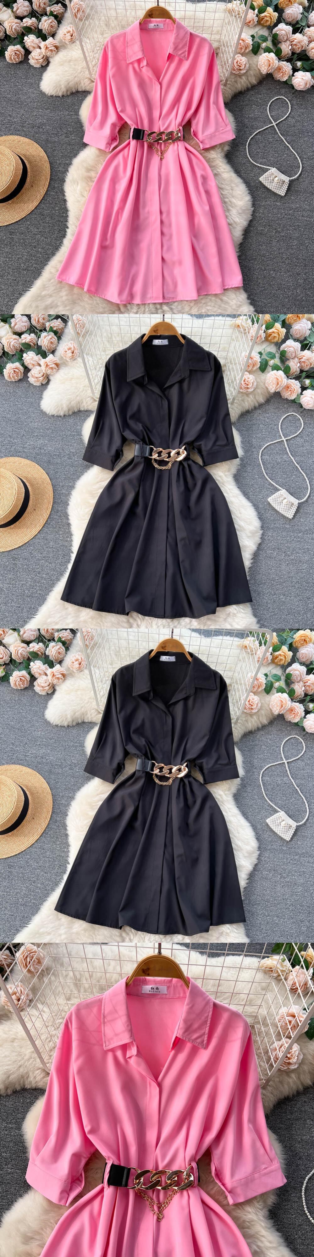 シャツドレス女性 2022 夏ターンダウン襟オフィスレディストレートサッシミニドレス女性白ドレス服 ホワイト サマー 夏物 会社 学校 通勤や通学にも Abe97779136642