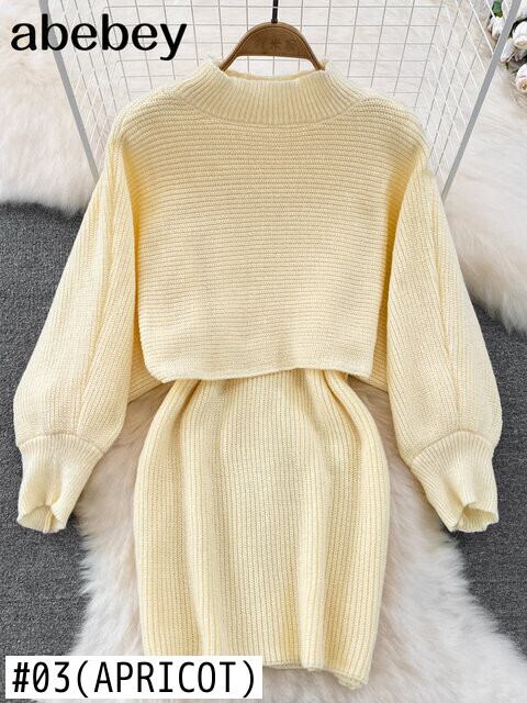女性スリムツーピースセットセータードレス秋冬ウエストニットアンサンブルミディアムロングパーティードレス オータム 秋物 ウィンター 冬物 Abe28202400113