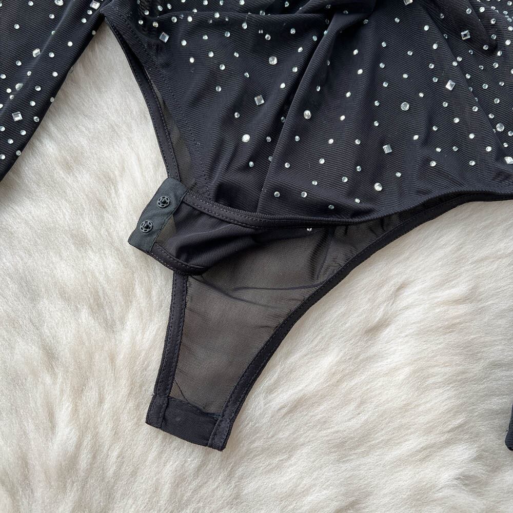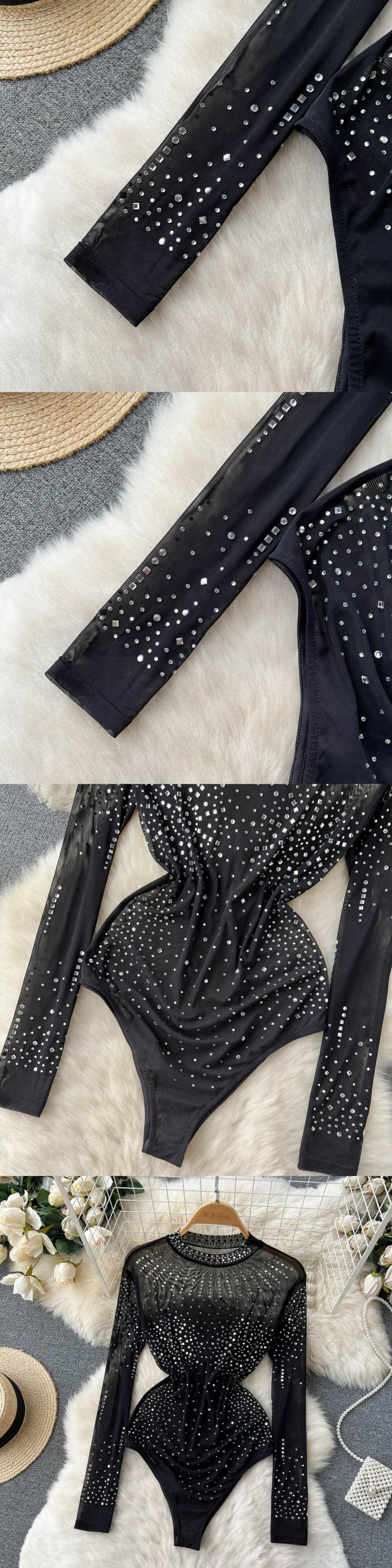 シースルーメッシュボディスーツ女性のセクシーなヌードモック O ネック長袖ボディコンジャンプスーツクラブパーティースキニーボディトップ女性 ロング Oネック Abe22730706910