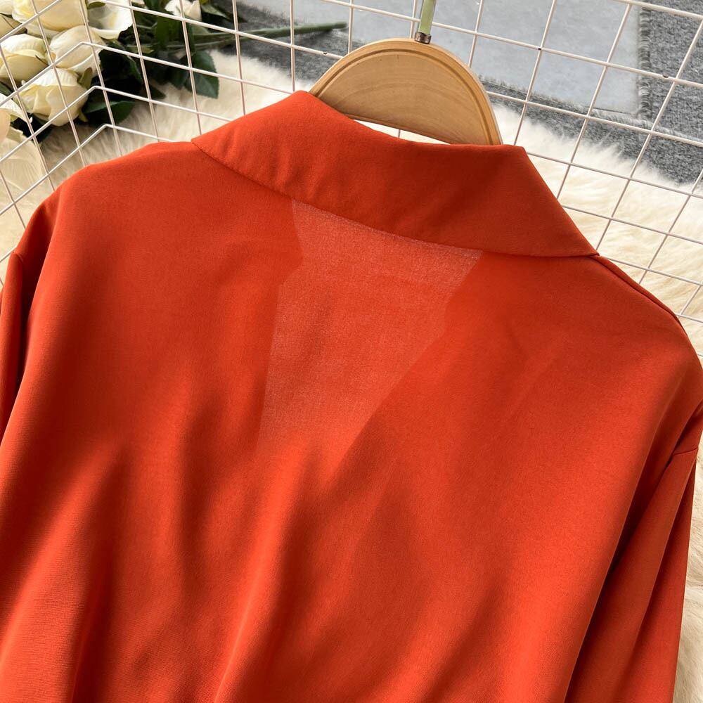 秋の固体二枚スーツラペル V ネックセクシーなブラウス + ポケットワイドレッグロングパンツ 2022 女性レトロセット オータム 秋物 Vネック ワイドパンツ ソリッドカラー Abe72364035805