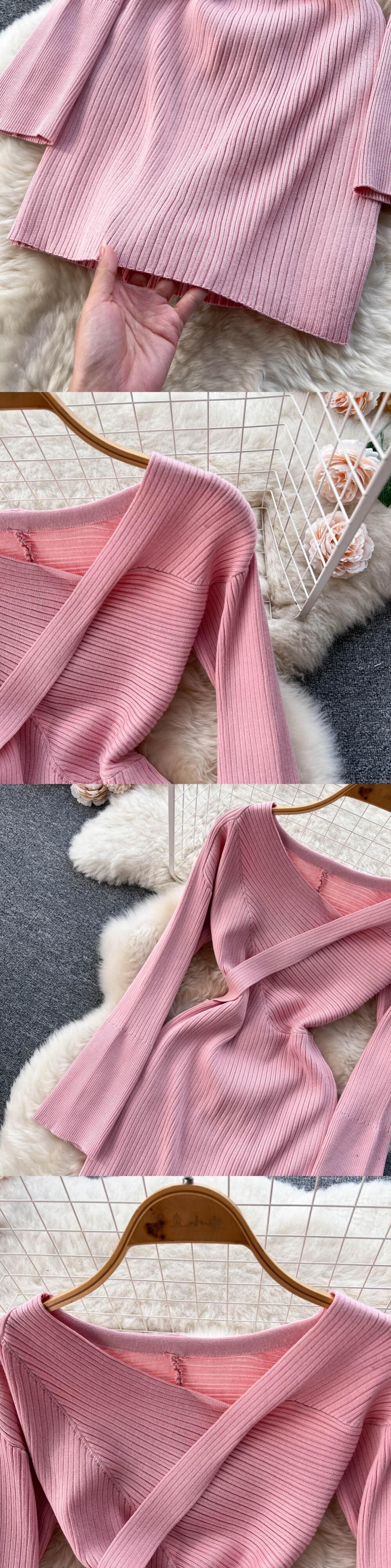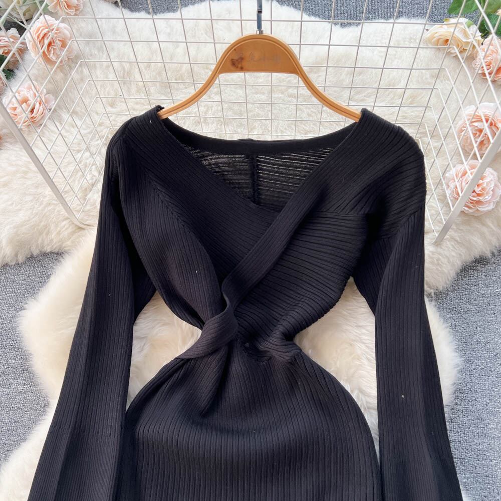 2022 女性の秋のニットドレス V ネックセクシーなスリム弾性特大の基本的なボディコンミディドレス冬ニット暖かいセータードレス エラスティック 伸縮 オータム 秋物 ウィンター 冬物 Vネック Abe85510841793