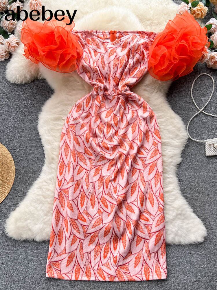 赤ミディドレス女性パーティーウェディングイブニングストラップレス半袖プリントローブ s ペンシル誕生日祝う夏 4XL ショート レッド ハーフスリーブ サマー 夏物 Abe2442084735
