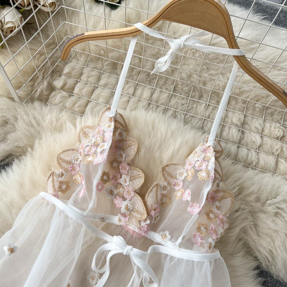 セクシーなレースのパーティー クラブ バックレス ボディコン シースルー メッシュ ストラップ ミニドレス 2023 夏服 サマー 夏物 Abe11062691351