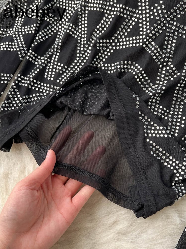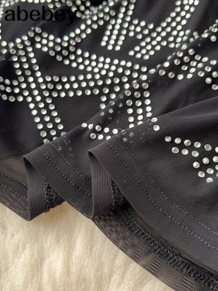 2023 女性のセクシーなメッシュ長袖シースルー透明フィッシュネットトップ Tシャツシアーブラッククラブウェア ロング Abe30708045539