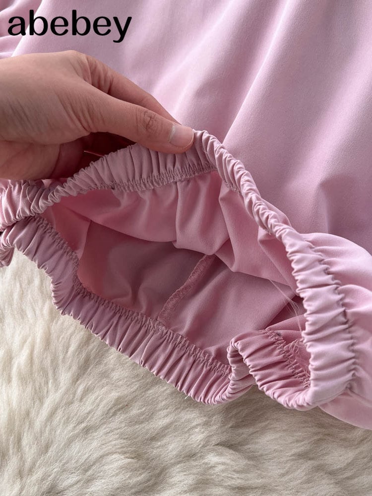 女性ソリッドスカートセットショートシーストップス + ミディロングスプリットプリーツスカートビーチ夏ツーピーススーツ サマー 夏物 ソリッドカラー Abe82116251012
