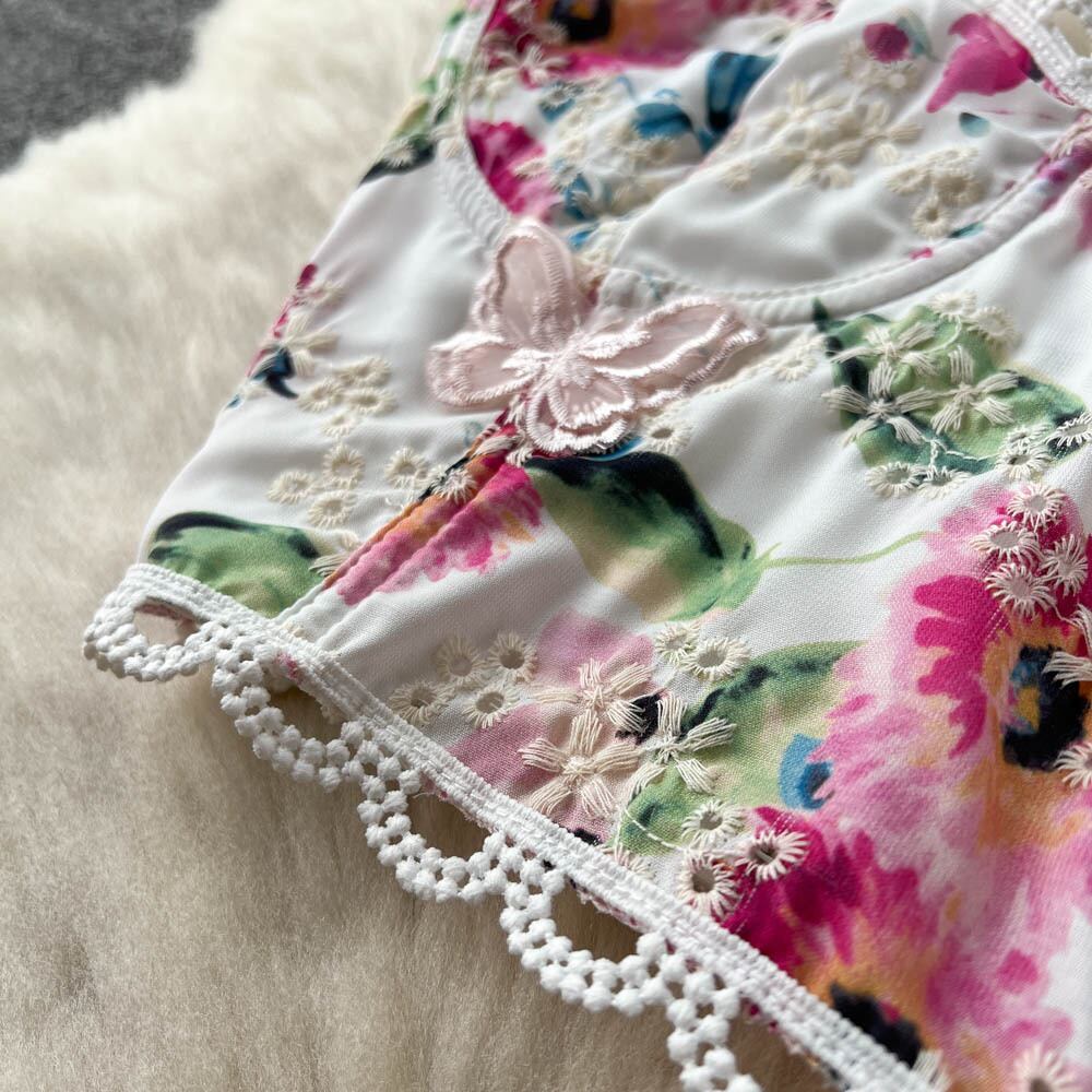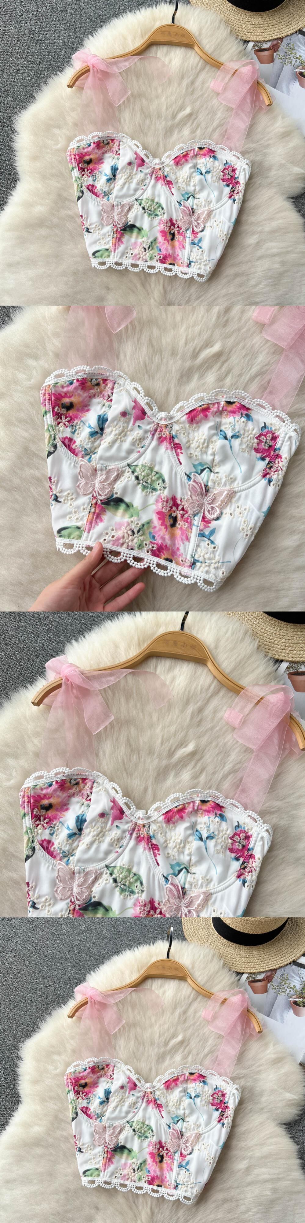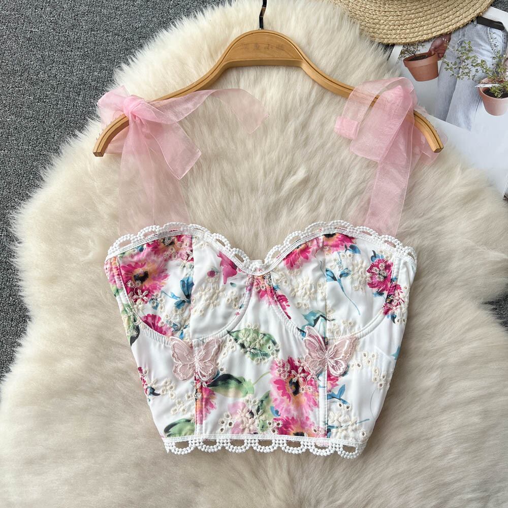 セクシーなプリント女性キャミソール夏レース背中の開いた休暇スリム気質ビーチタンクトップ サマー 夏物 Abe94692737955