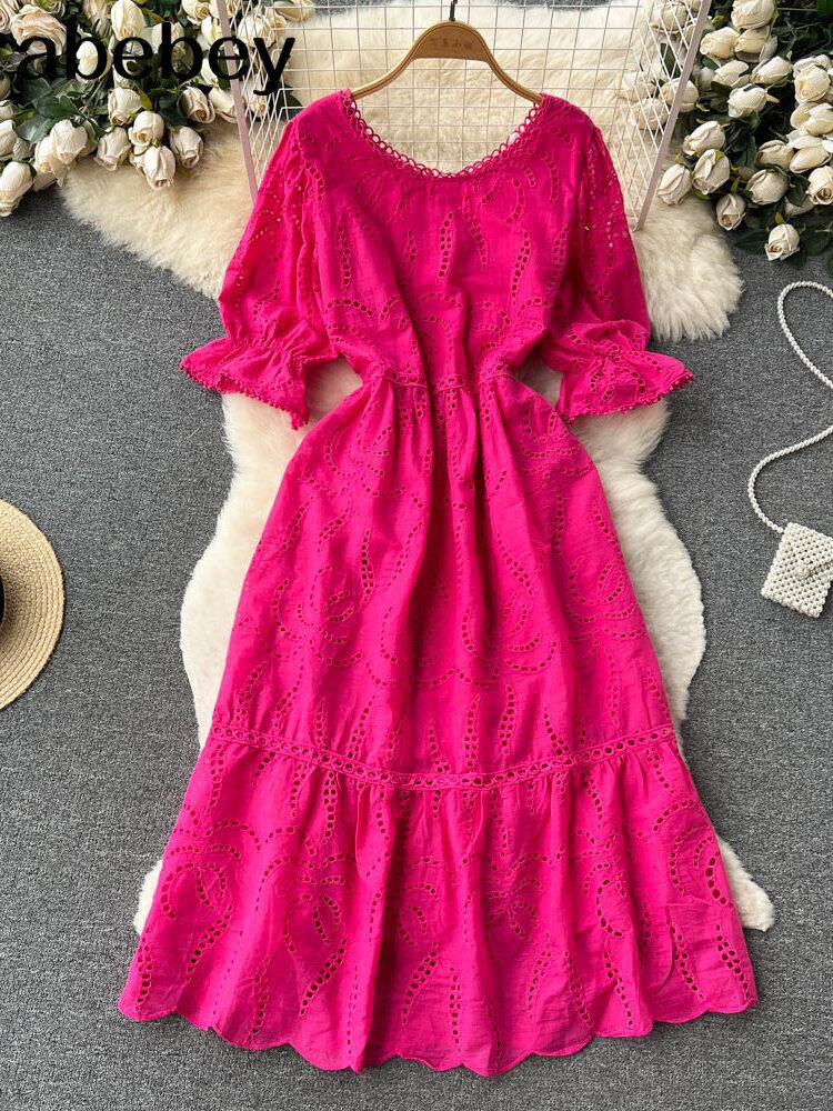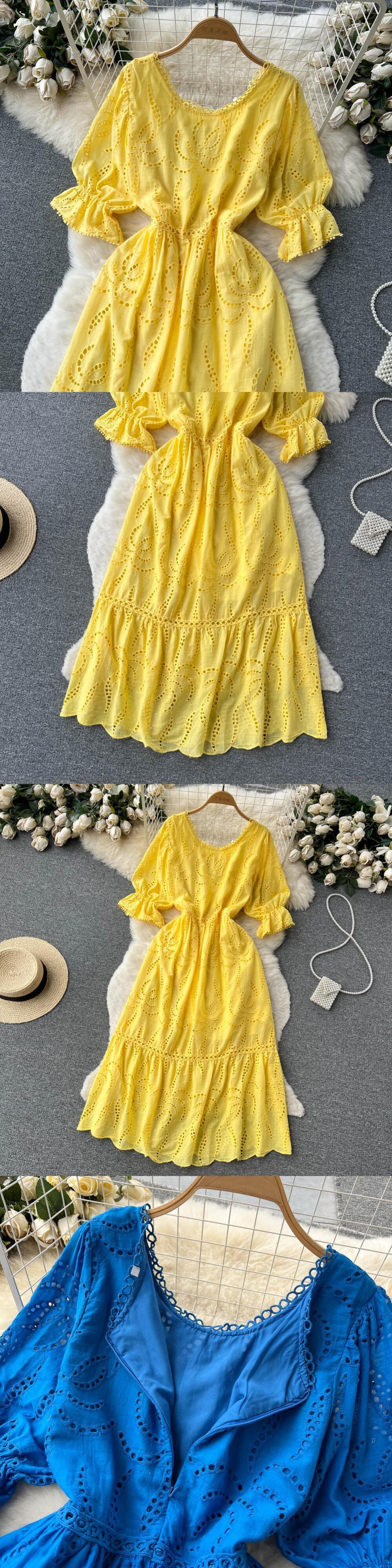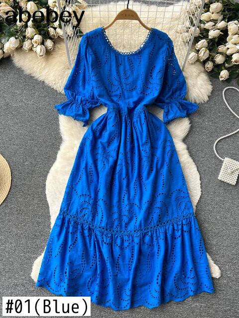 グリーン/ホワイト夏レース刺繍ドレス U ネック女性半袖ドレス パーティー ビーチ ミディ ドレス ショート ハーフスリーブ サマー 夏物 Abe62091306377
